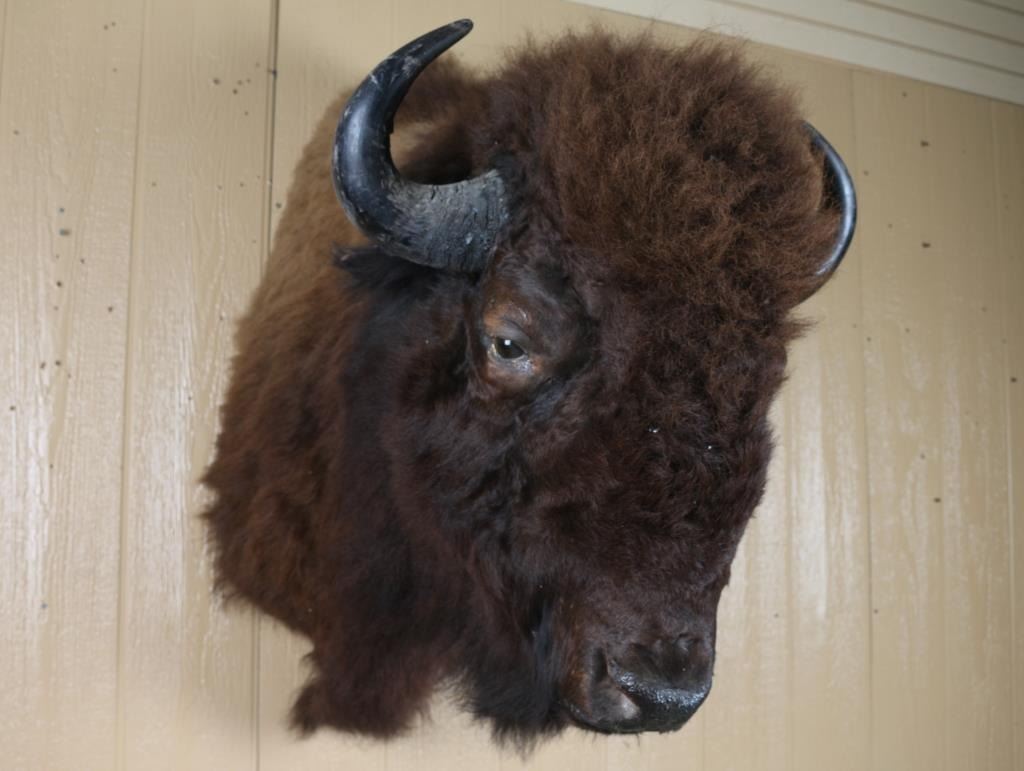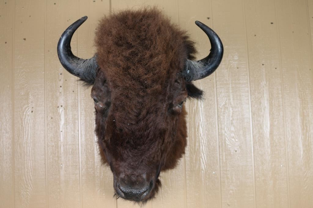 "The Texas Bison Association is dedicated to ‘Preserving the Legend’ by the advocacy of Texas bison through conservation, leadership, education and public awareness for bison production, the industry, and the species." This beautiful animal measures 23" spread and 22" wide x 37" from mount to tip of nose. Excellent condition. Heavy - Large - Buyer to arrange pickup.