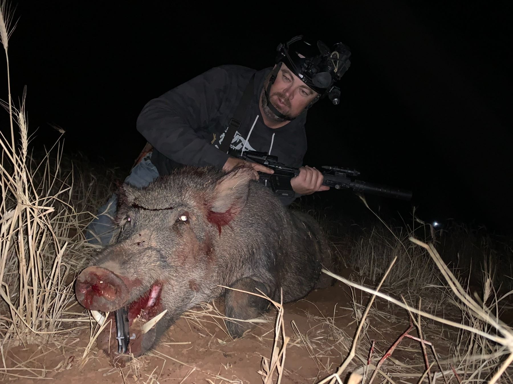 Trip Description: Come explore thousands of acres of the charming cowboy Wild West Panhandle of Texas. Located on the edge of the Palo Duro Canyon, this night pig hunt will give you the perfect taste of adventure as we combine two different styles of hunting! This 2 night hunt includes lodging with a full kitchen or several local restaurants will give you a taste of west Texas and famous “TexMex” cuisine. Listen to the sounds of baying dogs in the canyon darkness, broken apart by the snorts and squeals of Boars with some serious attitude. Long Time professional Houndmens and incredible dogs make this worth the trip to see them work. Get up close and personal if you “Can Handle the Adventure” and dispatch your Boar with a “Texas Pig Sticker”. Drive along the fields and on the rim and flats above the canyon while night scoping for groups of forging and damaging pigs as they marauder through croplands. Once spotted, make a stalk using our weapons and ammo topped with the latest in Thermal imaging scopes. Many large boars are taken on this hunt, but the best eating are the sows and smaller ones. Make sure to bring along a big cooler because at the price of meat these days this is a good chance to fill your freezer. No limit on pigs for this adventure.