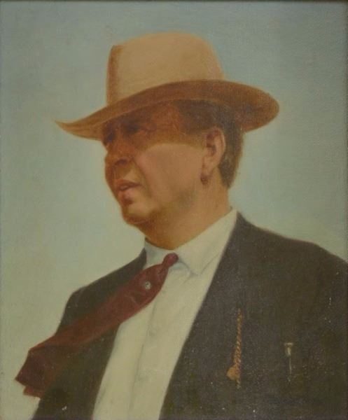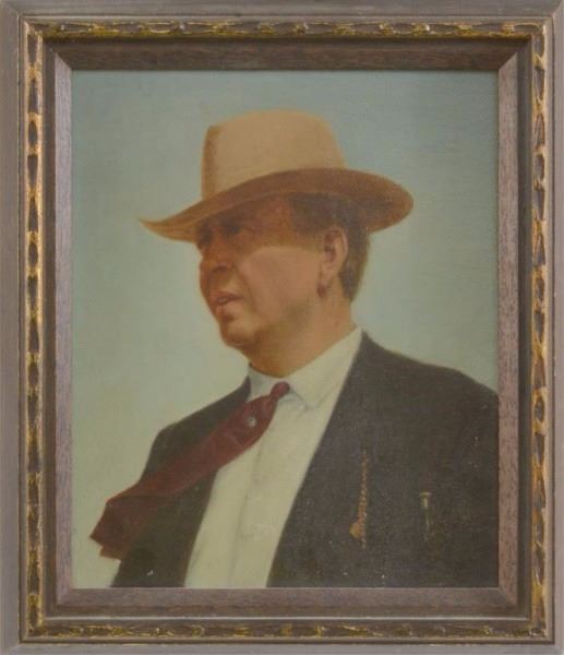 Original oil painting belonged to Frank Hamer. 5.5" x 7". Pictured in a 1973 Austin Texas newspaper article with Frank Hamer jr.