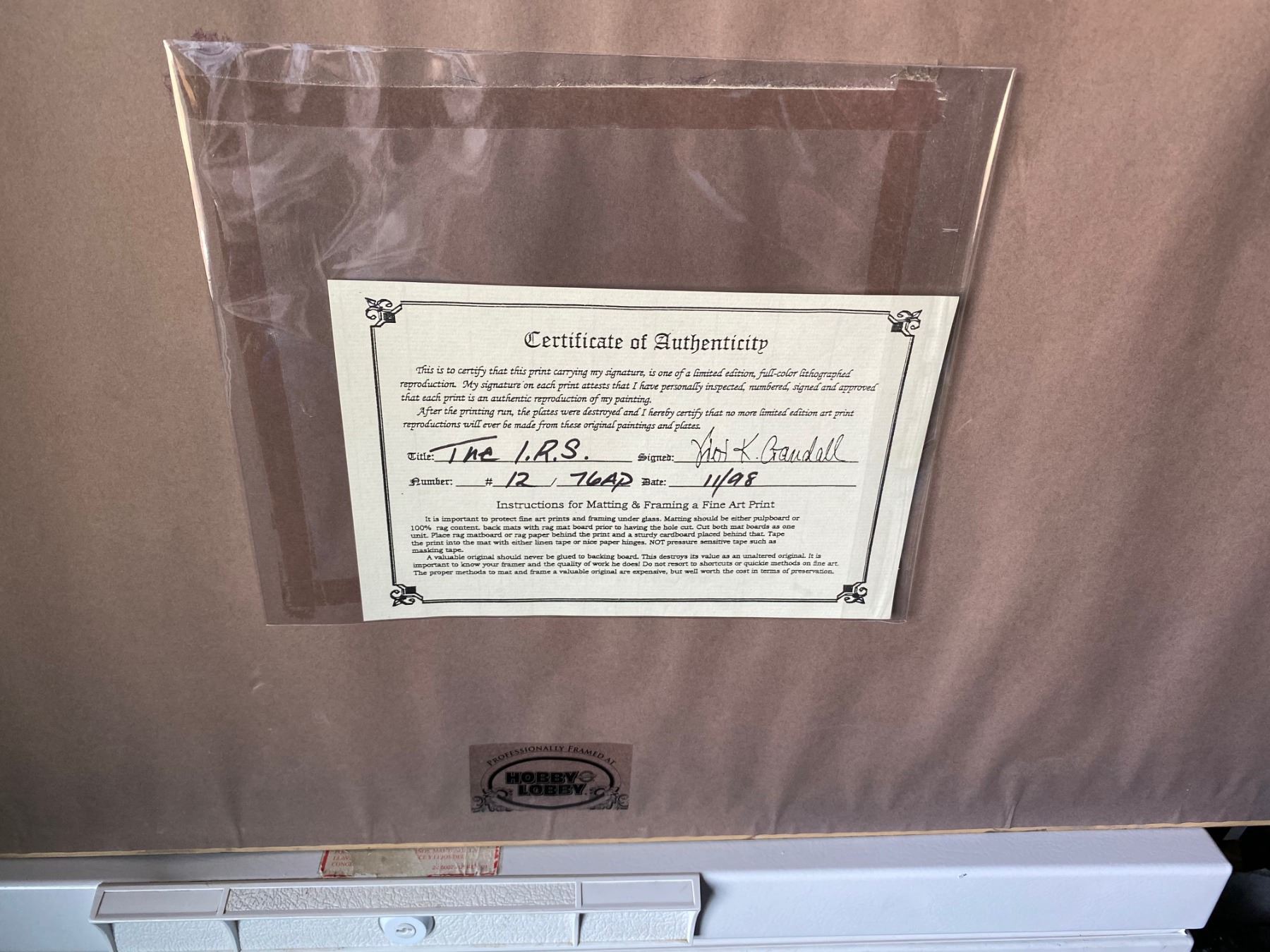 Description:"The IRS" is a framed artist proof print by Vivi Crandall. #12 of 76 and signed by the artist
