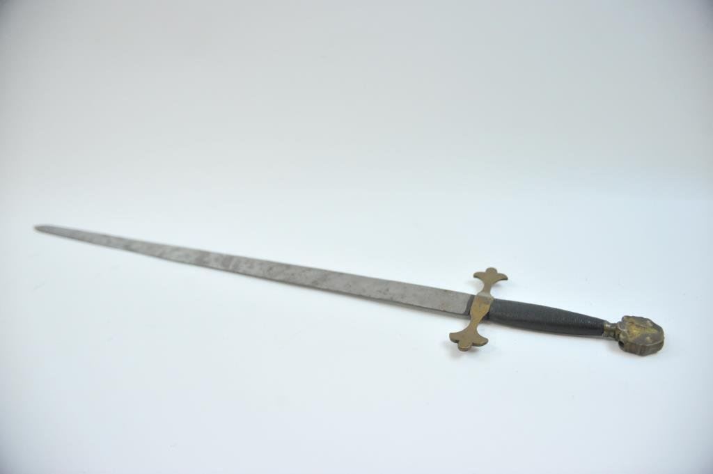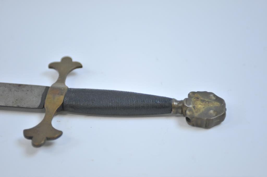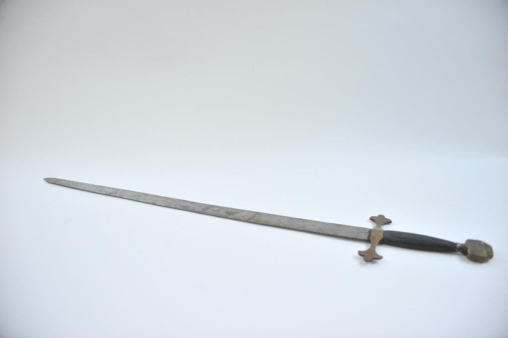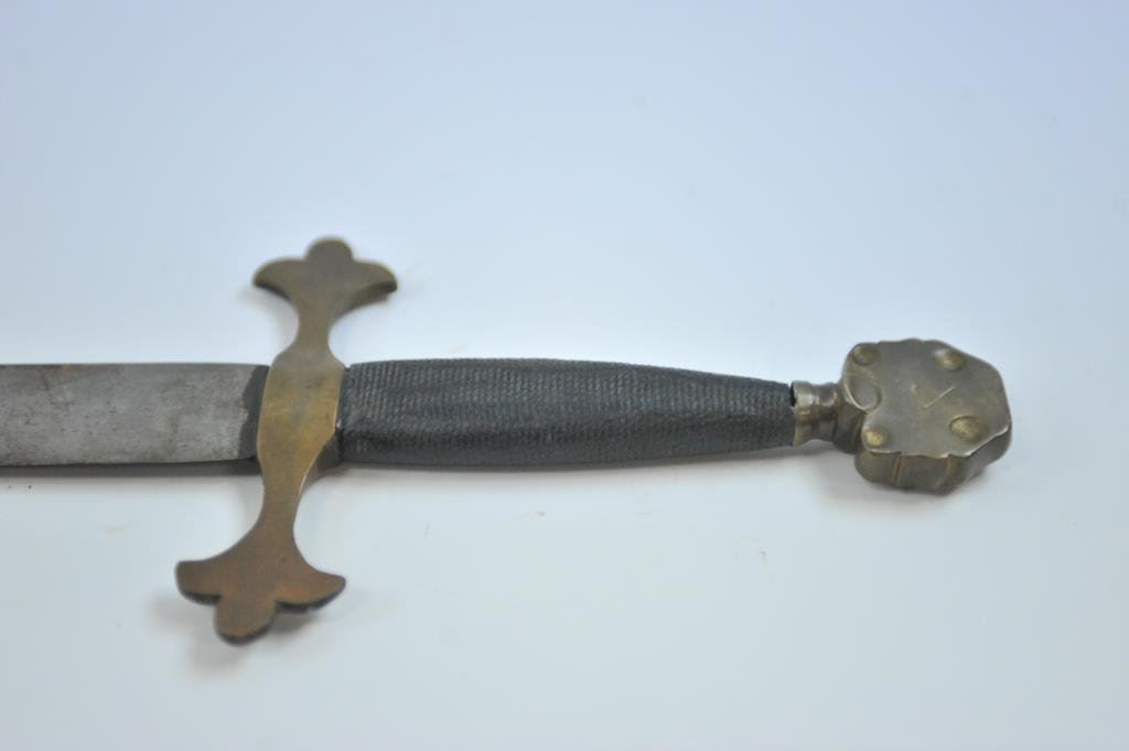 overall with brass hilt and mounts with wrapped grip. The type seen in Hollywood films of golden age like “Prince Valiant”, “The Crusaders”, and “Knights at the Round Table”. Est.: $100-$300