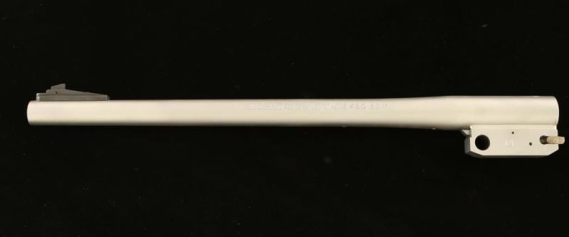 Factory 15" stainless steel barrel with ramped patridge front sight and removed rear sight. The matte finished exterior exhibits a few minor bright scratches and the bore is excellent. Overall condition is very good.