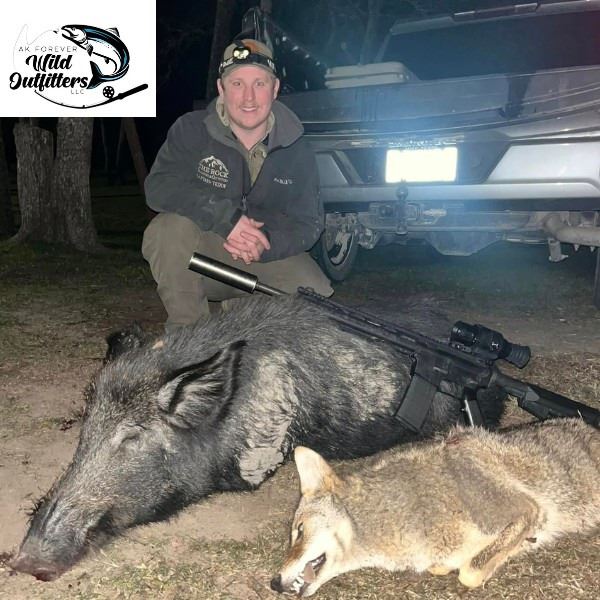 Join Jon Nichols at AK Forever for this action-packed 3-day Texas hog hunt for four hunters! This trip includes 2 nights of hog hunting for unlimited free range hogs with a professional guide using thermal setups for night hunting. If you haven't hunted hogs at night, we can guarantee it's an experience you won't forget. Some clients come away with over 10 hogs per night! Included in this package are lodging, unlimited hog shooting and processing,full thermal setups to use for night hunting, and additional options for duck hunting in season, predator hunting, and guided fishing trips on Richland Chambers Lake. This hunt is available from January to March 2026 or 2027. Hogs will be quartered on site and hunters can decide if they want to drop at a butcher for additional cost, or bring home in quarters. Additional hunters may be added for $1800 per person (may take up to 6). Not included: RT airfare to Dallas, transportation to Coolidge (~1.5 hours from DFW), meals and alcoholic beverages, gratuities, and if doing more than hog hunting-freshwater fishing license ($58), small game license ($48), and duck hunting federal ($25) and state stamp ($25).