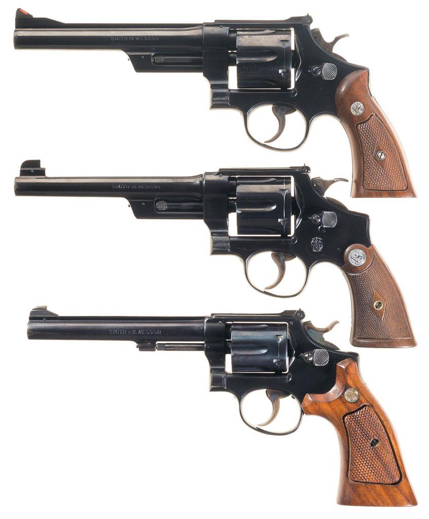 Three Smith & Wesson Double Action Revolvers -A) S&W .44 Hand Ejector 4th Model Target Revolver