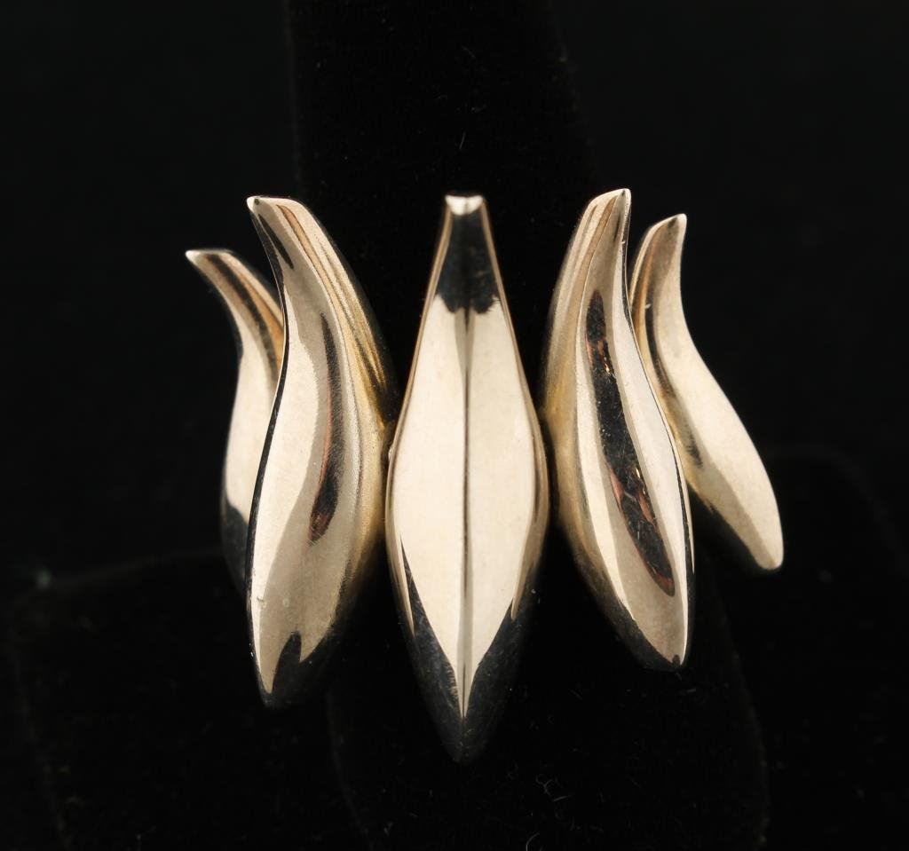 Tiffany five fish silver ring by Frank Gehry. Size 7 ½-8 (Can be resized). With blue box and suede pouch. Out of production and a limited edition. Est.; $600-$1200