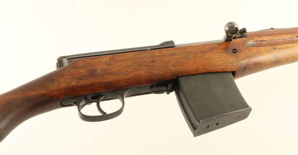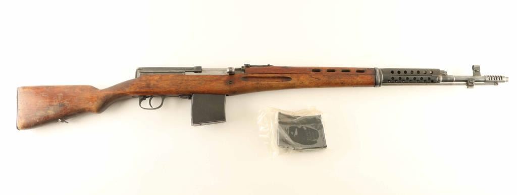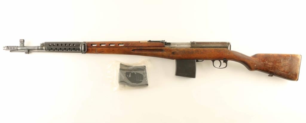 Manufactured by Izhevsk. Rifle. Semi-automatic. WW2 Russian Military issued rifle. Gas-operated short-stroke piston. Tilting bolt. 27" barrel, with muzzle break. Rear ladder, and front hooded post sights. Cleaning rod present. Ventilated steel barrel shroud. 1941 dated receiver. Chrome bolt. Blued metal finish. Wood stock, with ventilated handguard. Some faint cartouches on rear stock. Steel butt plate. Bore appears a little rough, rifling present. Action is crisp/tight. Wood has finish loss, scratches, scratches, dings. Top of handguard is cracked with a 1" chip. Metal has finish loss, edge wear, and surface rust on receiver. Typical for military rifles. Nothing serious. Comes with a original WW2 era magazine, and a new made Magazine. 10-RD. Note* Both the receiver, and original magazine are marked with Finland's "SA". , indicating capture by Finland from the Soviet Union during the winter war of 1939-40. 2700 were captured, making this a somewhat rare rifle. NRA Condition-Good. C&R Firearm.