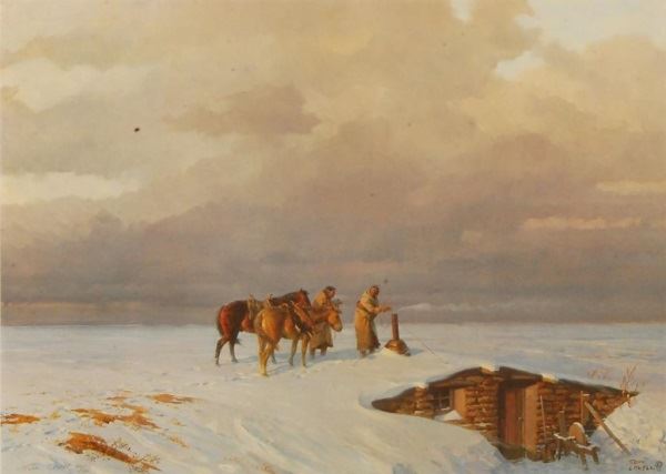 Tom Lovell (1909-1997). 22" x 30" signed lithograph. Original signature limited edition. #289/1000. Unframed.