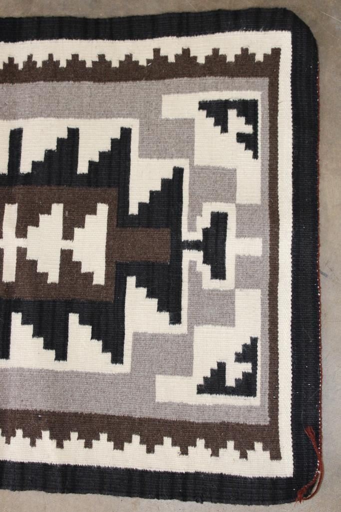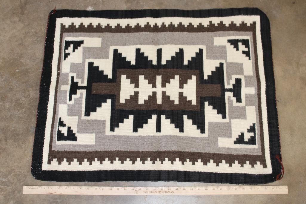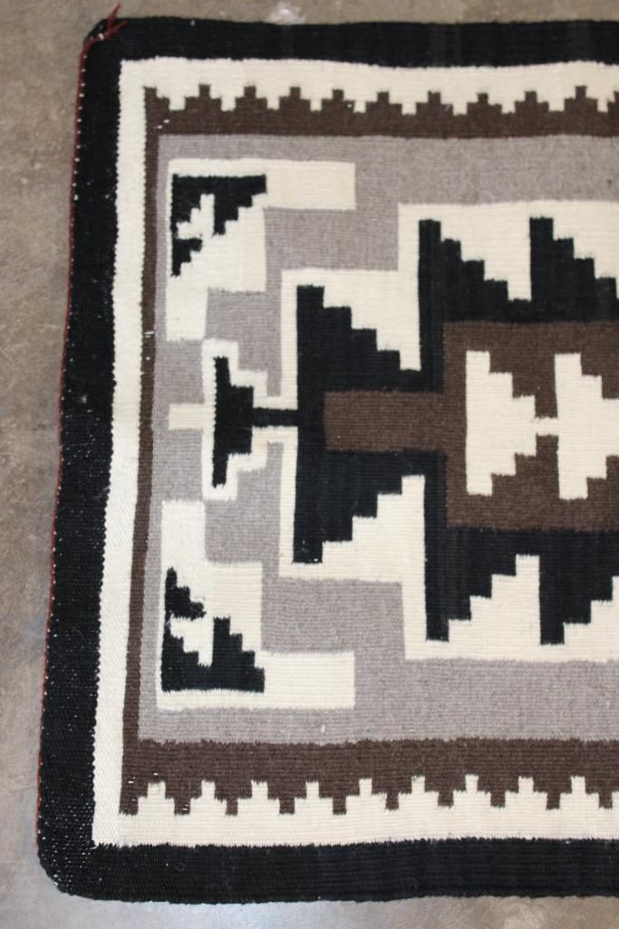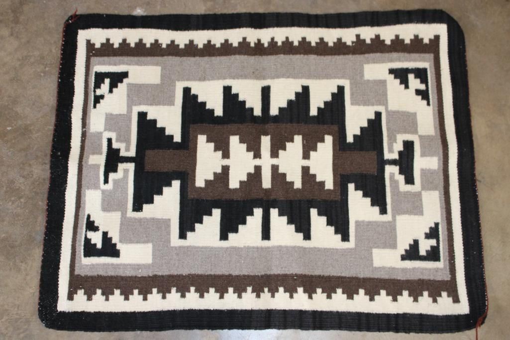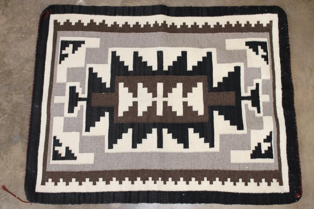 Traditional Hand-woven "Two Grey Hills" NAVAJO TEXTILE or Rug. This appears to be old, exact weaver unknown. It measures 34.5" Long x 27" Wide. COLLECTIBLE NATIVE AMERICAN TEXTILES AND RUGS