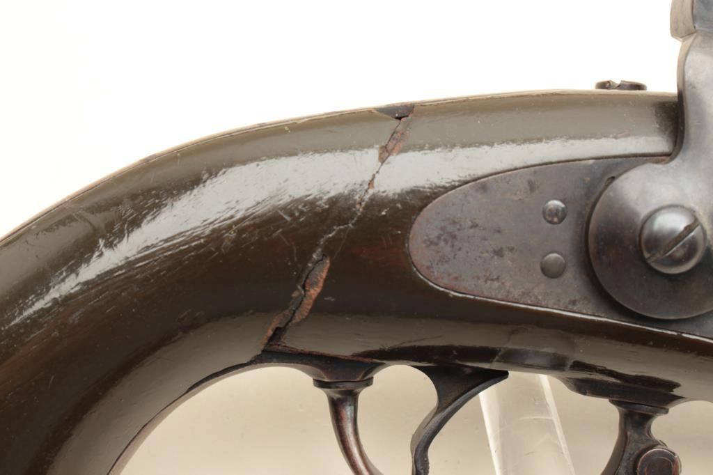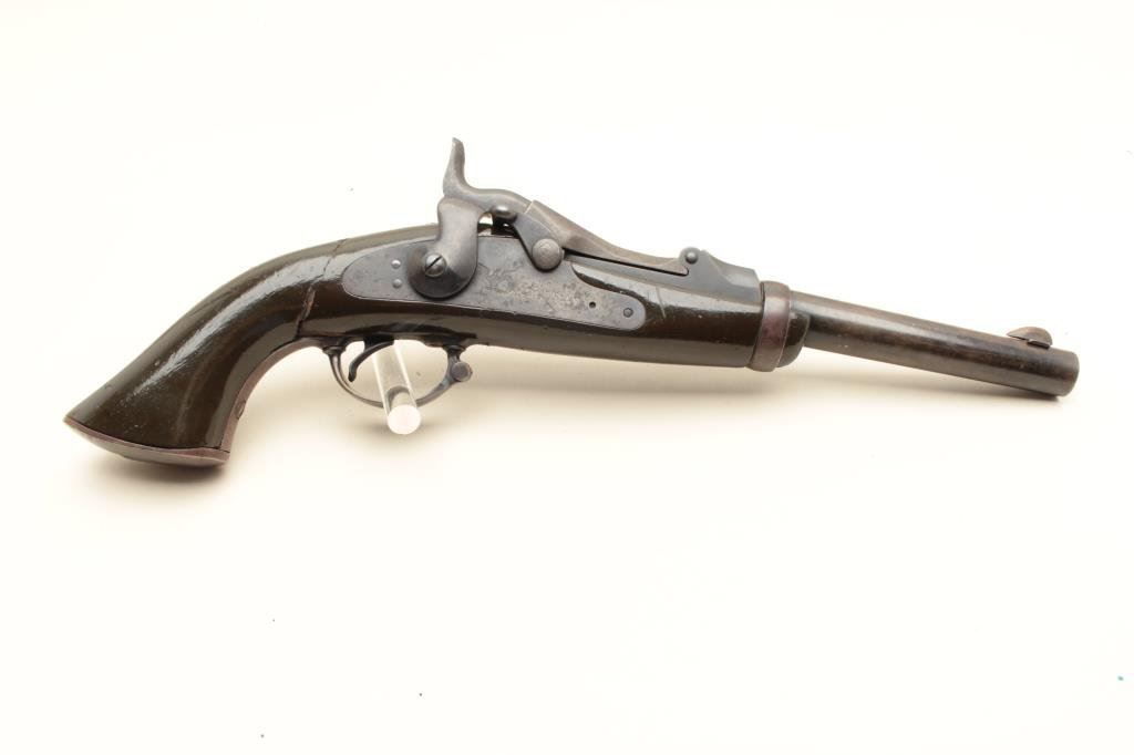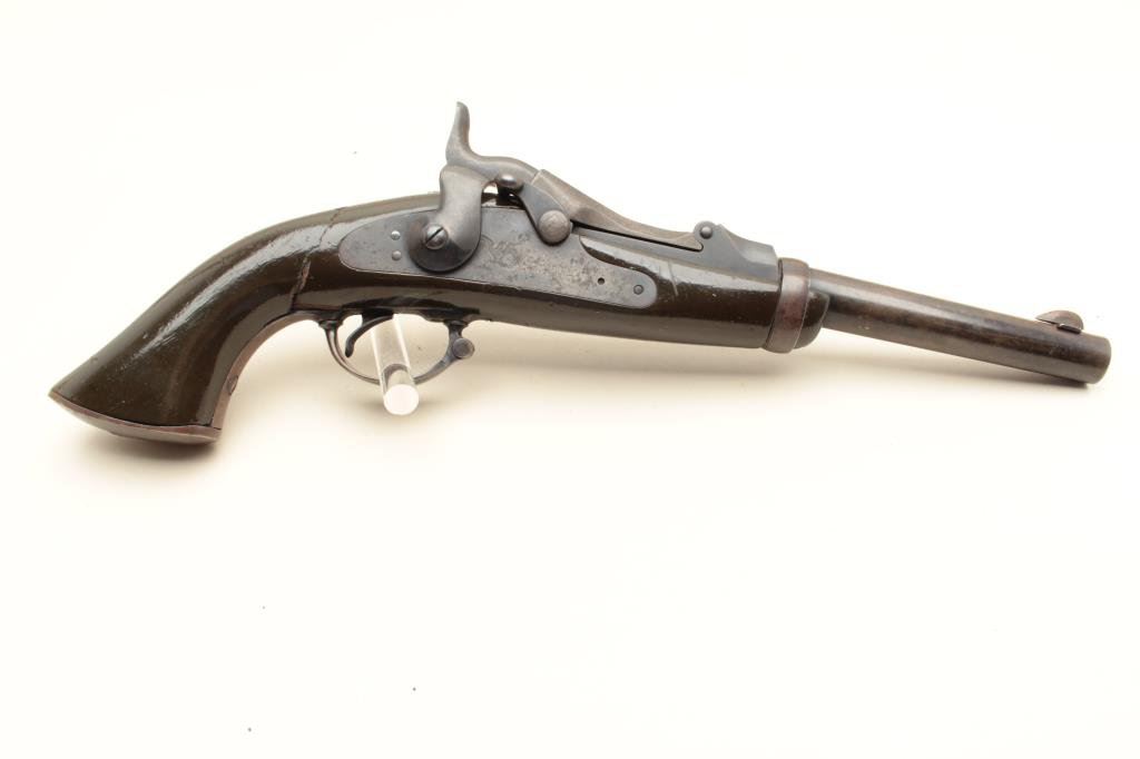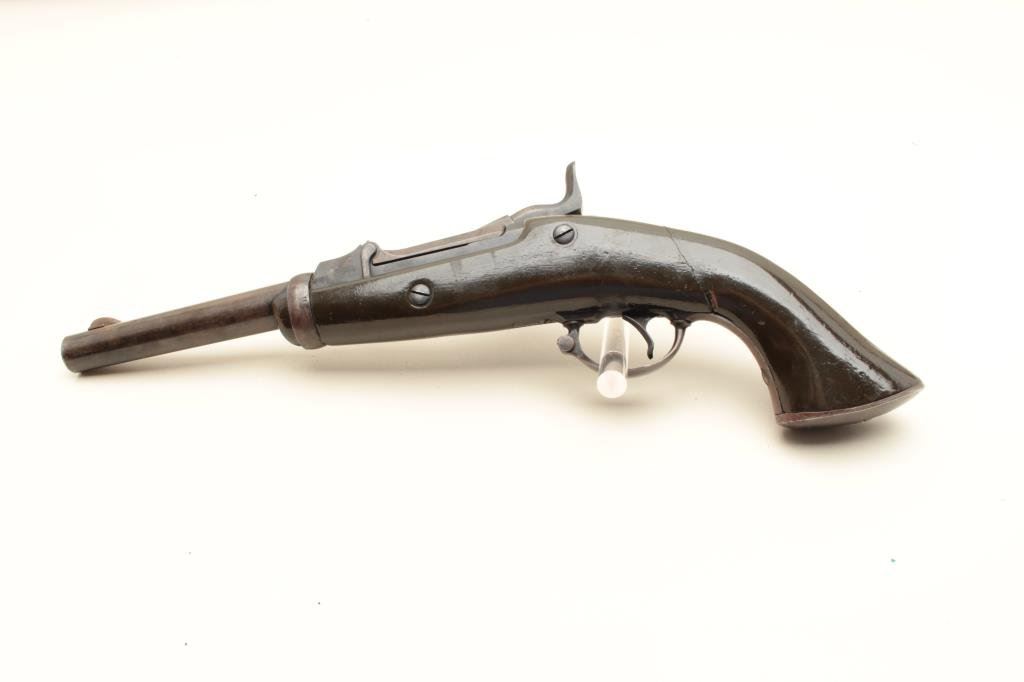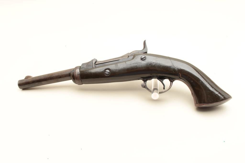 19” overall with wood stock; S/N 478023, good action, re-finished wood stock with old crack at wrist. (Antique). Est.: $100-$300.