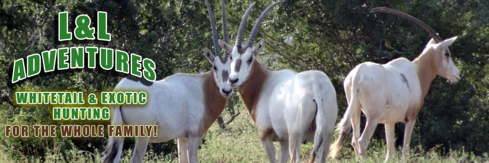 This package is for a fully guided Trophy Exotic Hunt for two hunters for four trophy exotics for a credit of $4000 ($1000 cerdit for each trophy exotic, 2 trophy exotics per hunter). Slect from 30+ species of exotics that can be hunted year-round. This package also includes 3 days and 2 nights of meals and lodging, guide fees, and field dressing/skinning/quartering of animals. Additional trophy animals and/or additional hunters can be added at a 10% discount. Extra days/nights and non-hunters may be added at our posted daily rates. Credits/discounts may not be applied to management or meat animals. Get the Texas Experience when you come hunt with L&L Adventures in Wimberley Texas. Centrally located, the 150 year old Calhoun Cattle Ranch is only one hour from either the Austin or San Antonio airports. Stay in the Hunters' Lodge, a fully restored 100 year old cabin, or one of our three luxury teepees and enjoy our venison cuisine (both whitetail and exotic) as you hunt for trophy whitetail or over 30 species of exotics. The ranch has been described as a "Little Africa" because there is a different species around every corner. www.landladventures.net