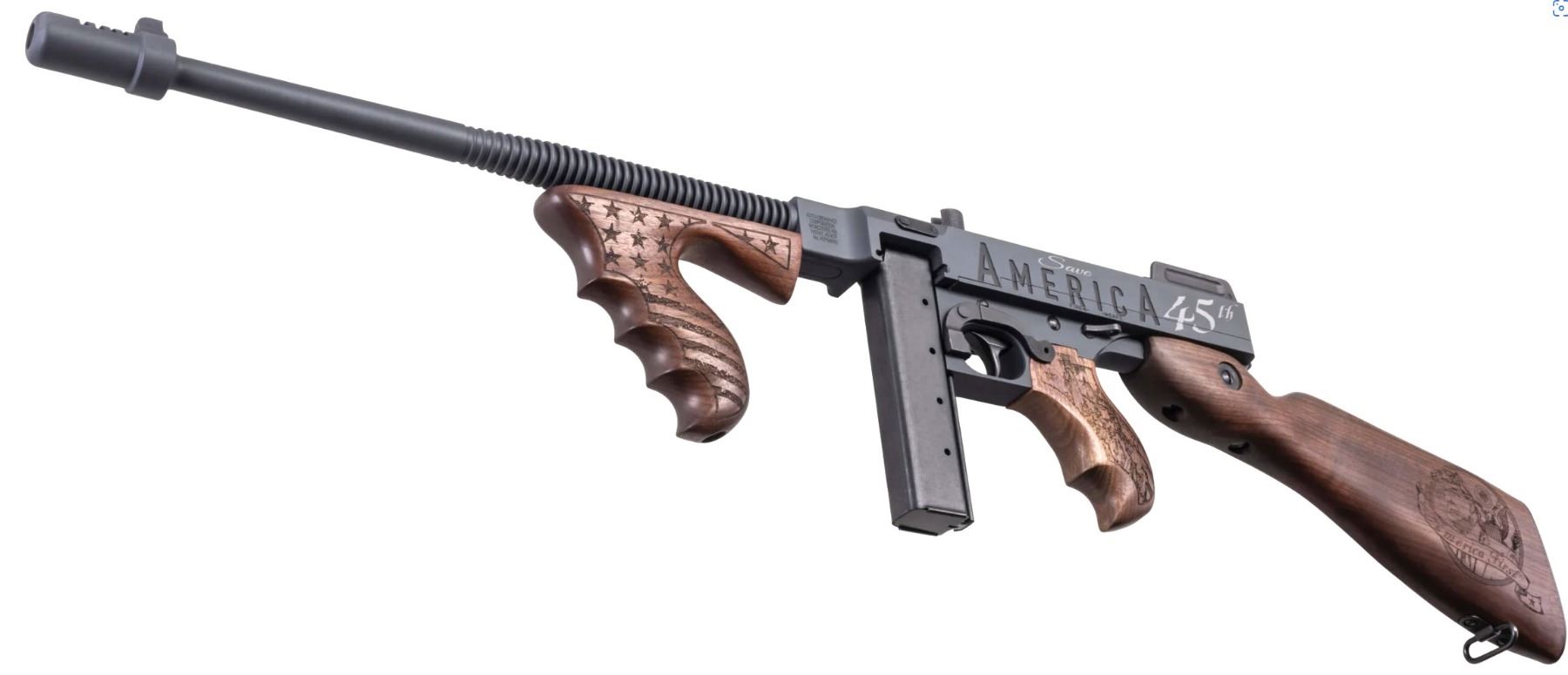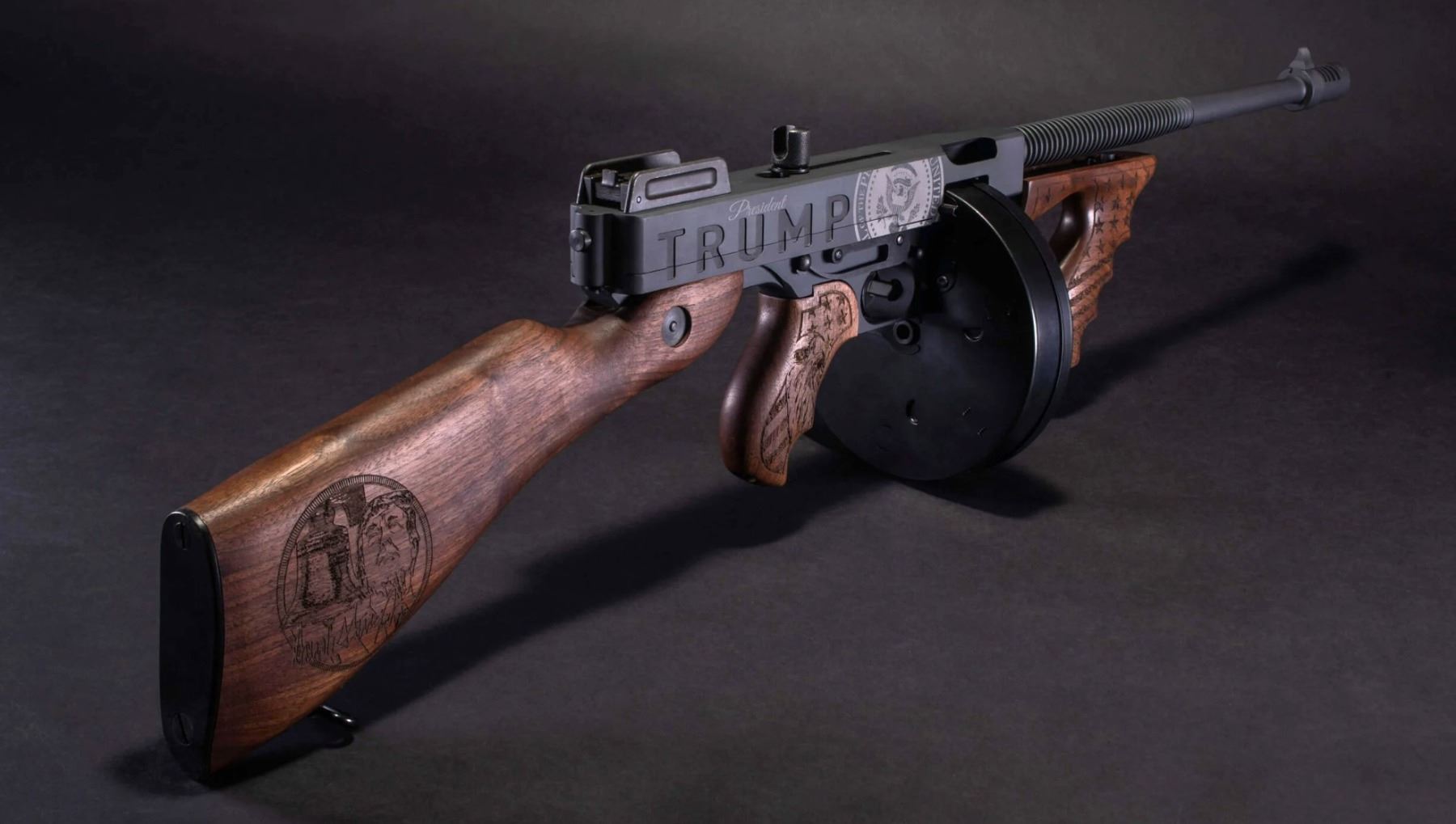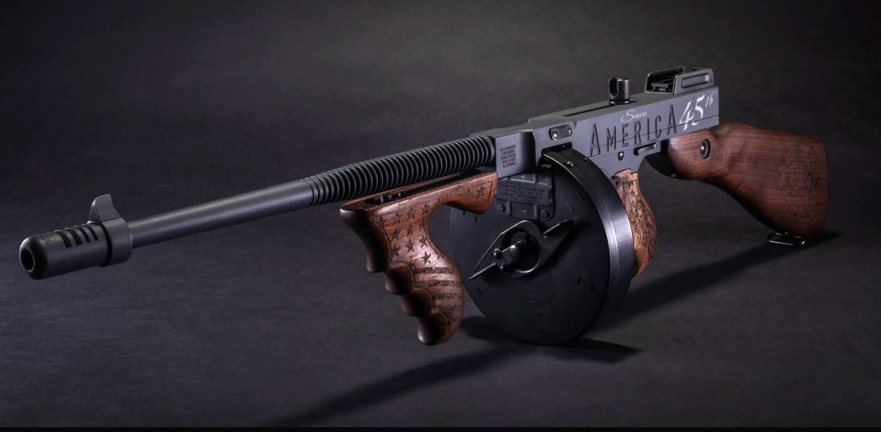 The Trump Save America Thompson starts as a Model 1927 Tommy Gun, chambered in .45 ACP.