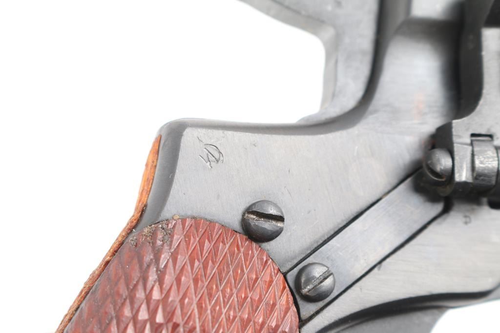 GOOD: Some minor replacement parts; metal smoothly rusted or lightly pitted in places, cleaned or re-blued; principal letters, numerals and design on metal legible; wood refinished, scratched bruised or minor cracks repaired; in good working order.