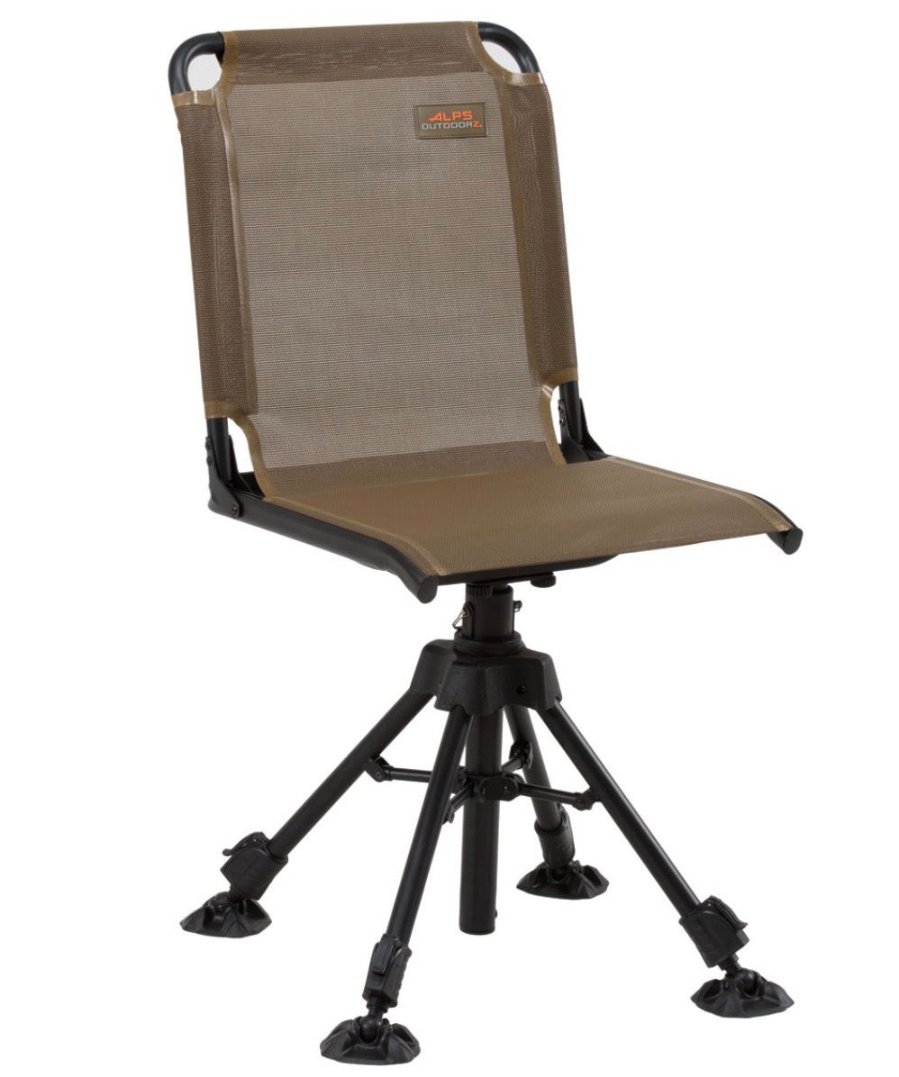 Alpz Outdoors stalth Hunter blind chair (2). Sturdy powder-coated steel frame for ultiamate support. Adjustable seat height, adjustable/removable arm rests, wide backrest and 360° swivel seat gives you maximum comfort. Large swivel feet with independently adjusting legs accommodates uneven terrain and prevents sinking. The Stealth Hunter Deluxe has added armrests on each side for extra support. Dimensions: 22.5" W x 14" D x 37" H, Weight: 16 lbs. 9 oz., Weight Capacity: 275 lbs.; shoulder and compression strap included.