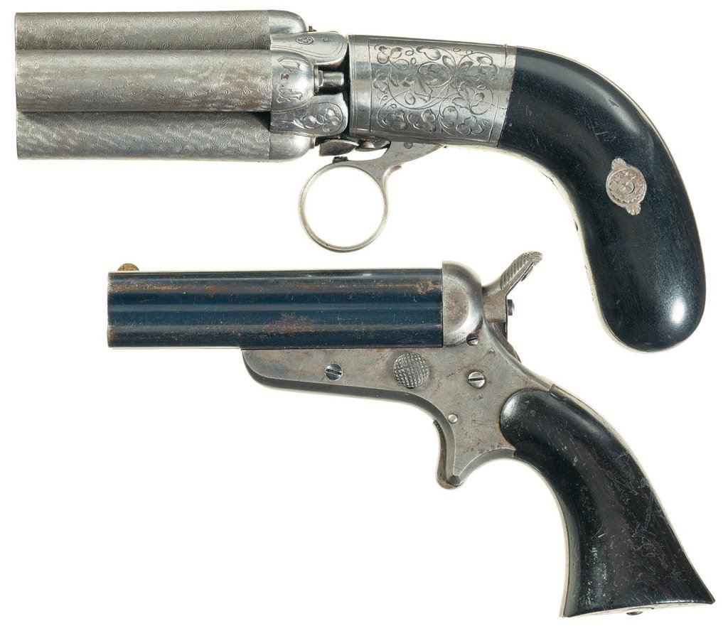 Two Antique Pepperbox Pistols -A) Engraved Mariette Underhammer Percussion Pepperbox Pistol