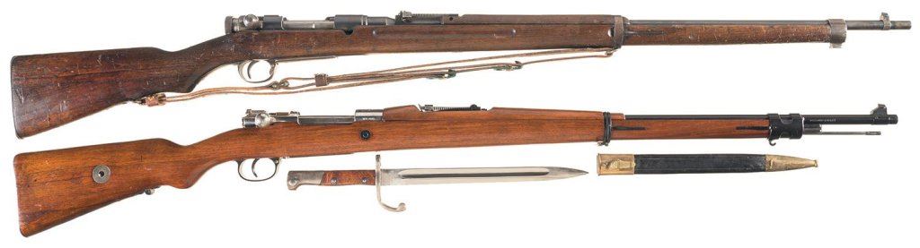B) DWM Brazilian Contract Model 1908 Rifle with Bayonet and Sheath