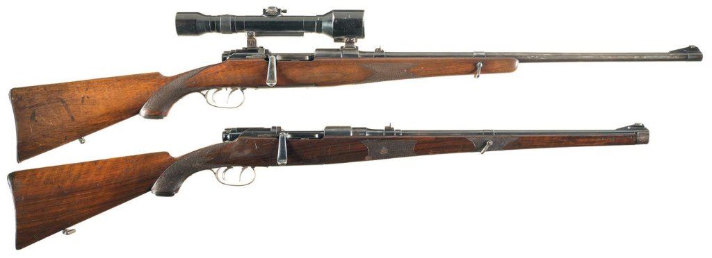 Two Steyr Mannlicher Schoenauer Bolt Action Sporting Rifles -A) Steyr Mannlicher Schoenauer High Velocity Rifle with Scope in 8x60Smm Magnum