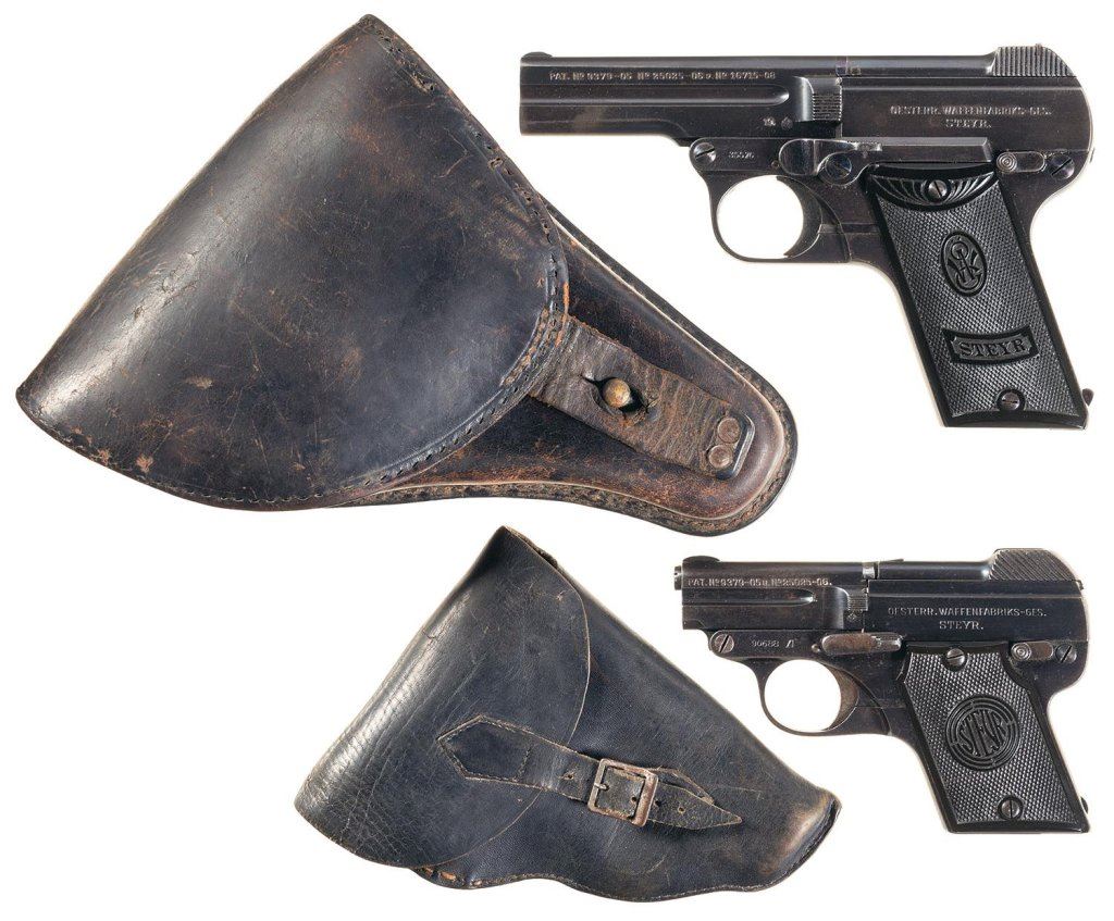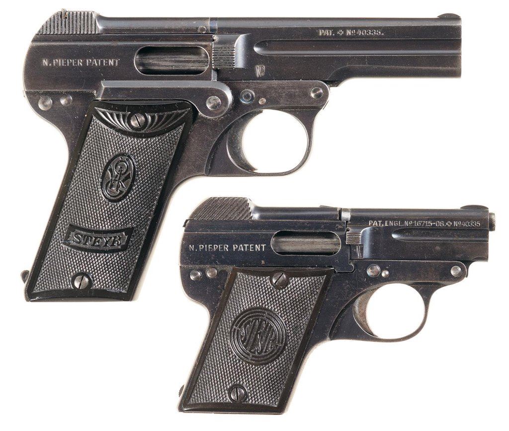 Two Steyr-Pieper Semi-Automatic Pistols with Holsters -A) Steyr Model 1908 Pistol