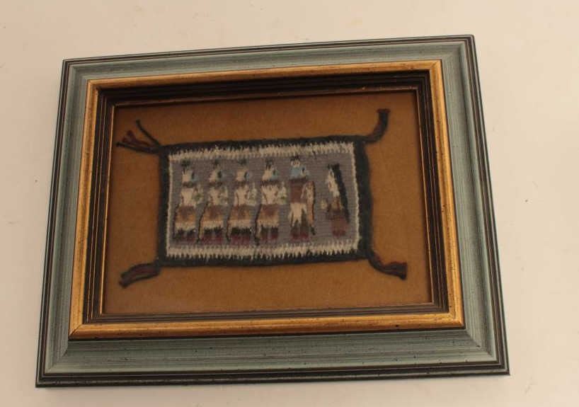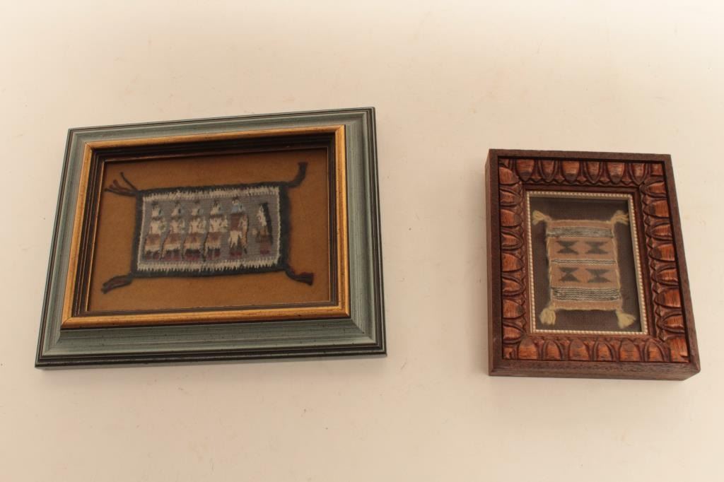 Two miniature pictorial rugs of Yei dancers framed. Collected pre-1972 by Elmer E. Taylor. From the estate of Elmer E. Taylor. Est.: $250-$500.