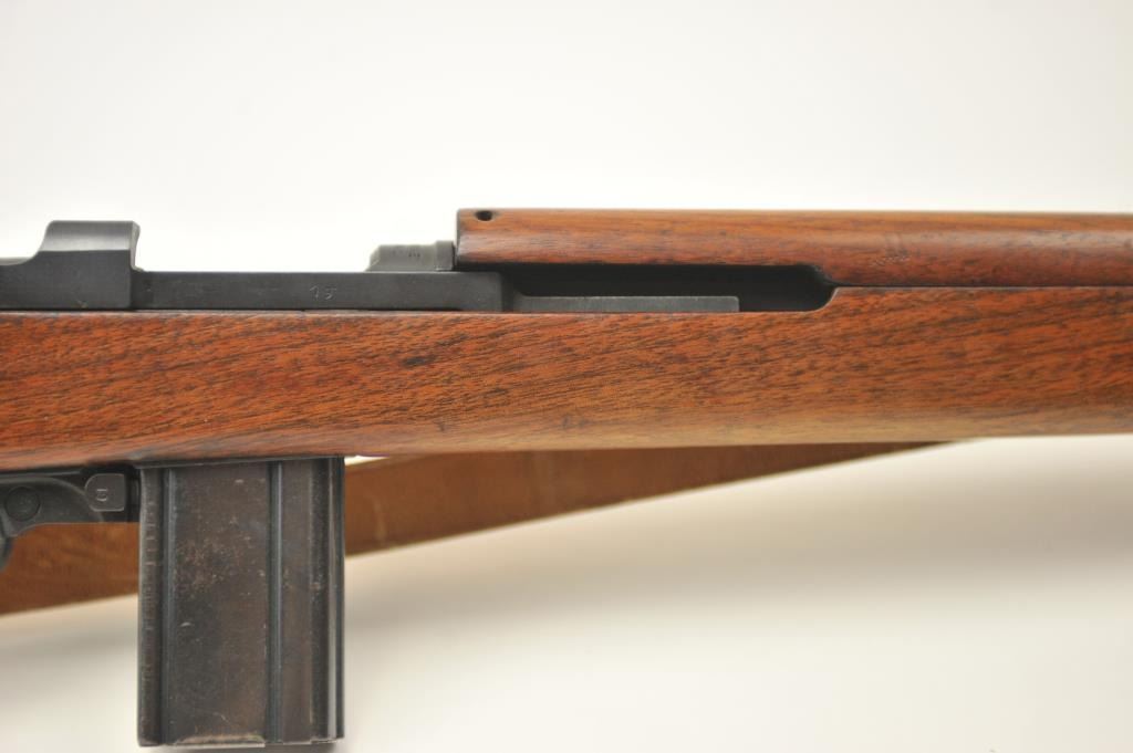 U.S. M1 semi-automatic carbine by Saginaw, .30 caliber, Serial #3362819. The carbine is in fine overall condition as re-finished. The carbine retains nearly all of an old post-war dealer re-finish with storage andhandling marks. The smooth wood stock is in very good condition with mars and small repairs. The oiler is intact and a period leather rifle sling added. A period canvas U.S. marked magazine pouch with “LAIRDSCHOBER 1943” stenciled on the reverse in very good condition. The bore is good, the action is crisp and the markings are sharp. The lot includes three 15 round military magazines (Not available in California orwhere prohibited). Est.: $600-$1,200. (C+R).