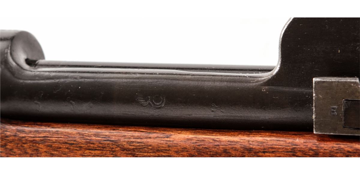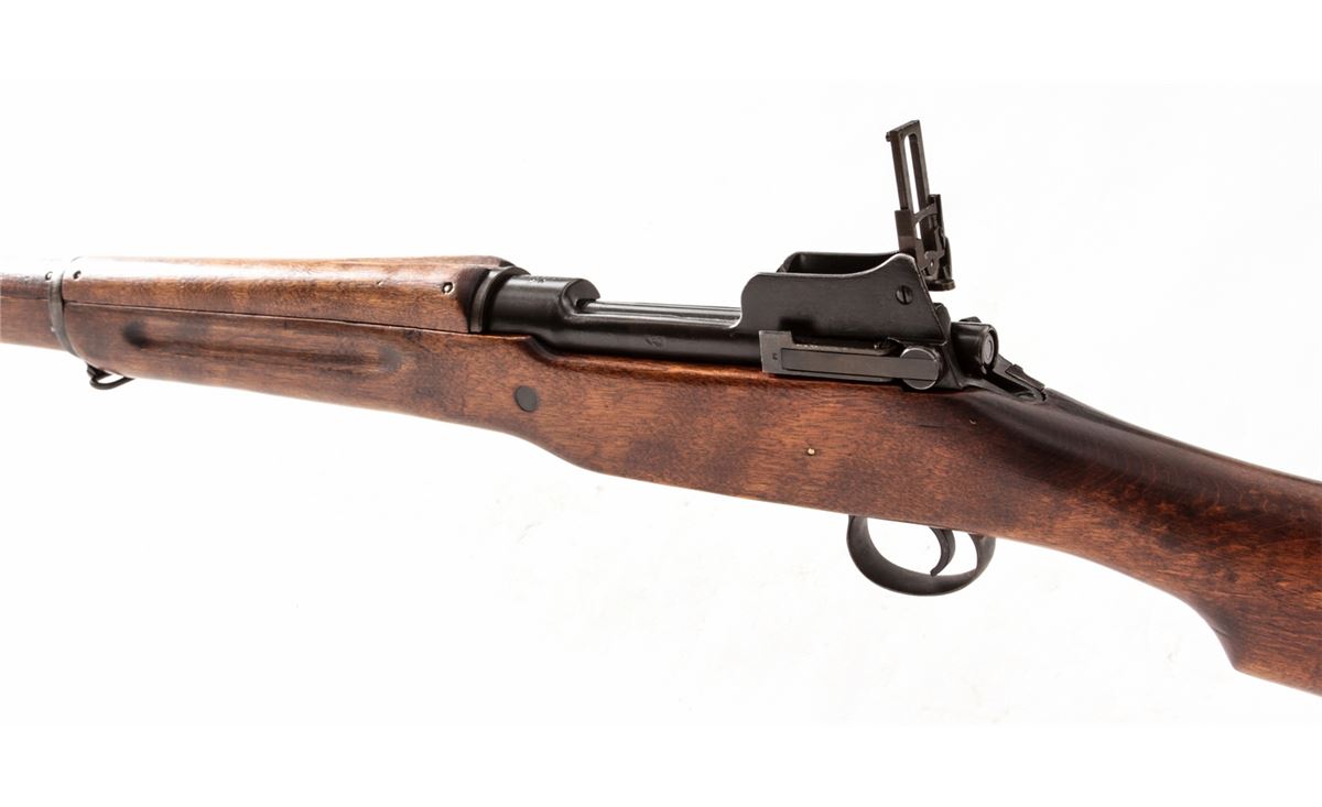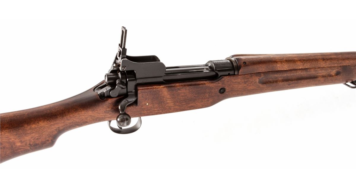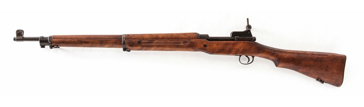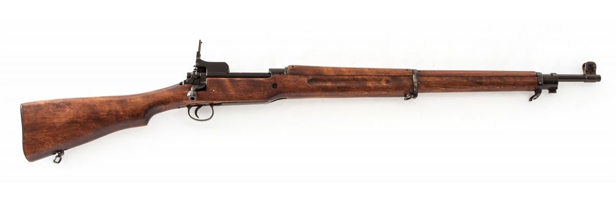 U.S. Model of 1917 Bolt Action Rifle, by Eddystone, #1262716, .30-06 cal., 26'' Johnson Arms barrel, matte finish, walnut stock and handguard. Condition is excellent as overhauled for WWII, retaining approx. 96% arsenal blue. Stock shows light sanding and re-staining. Crisp action, bright bore. Est.: $300-$500. (C&R)