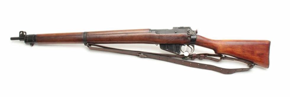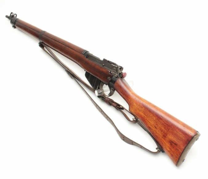 U.S. Property-marked Savage Enfield bolt action rifle dated 1942, 25.5” barrel, military finish, wood stock, leather sling, S/N 3C5576, in overall good condition with a fair to good bore, crisp action and markings, good wood. (C&R). Est.: $150-$300.