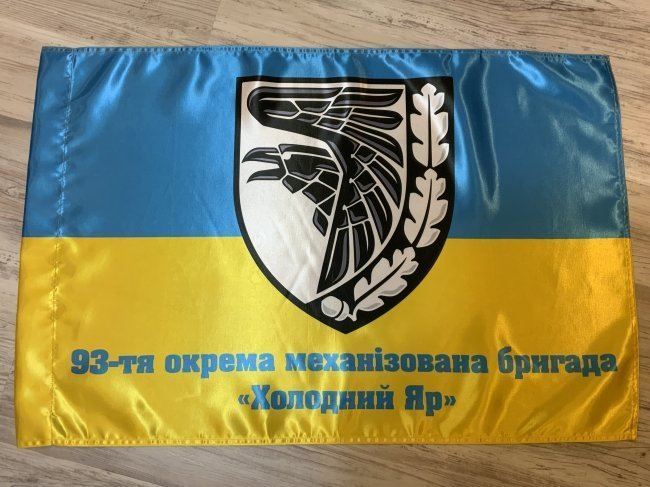 UKRAINE WAR UKRAINIAN ARMY 93rd MECHANIZED BRIGADE KHOLODNY YAR FLAG.The 93rd separate mechanized brigade "Kholodny Yar" of the military unit of the Ground Forces of the Armed Forces of Ukraine. The Kholodny Yar Brigade was formed on the basis of the 93rd Mechanized Division. 36 X 24 Size .