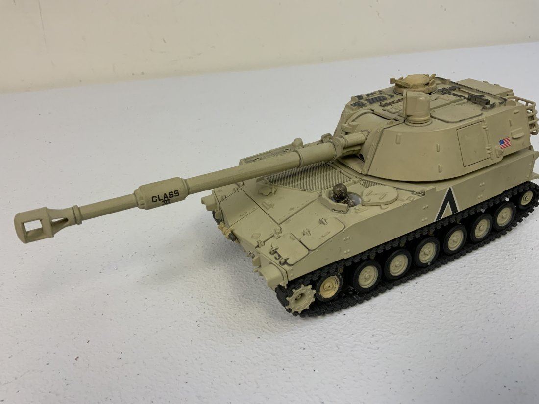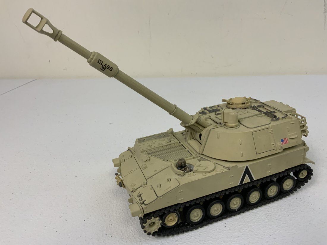 US ARMY M109 SELF PROPELLED 155MM HOWITZER PALADIN 1:32 MODEL . DIE CAST METAL . GREAT DETAILS. 8" LONG BODY . 11" TOTAL LENGTH WITH BARREL .