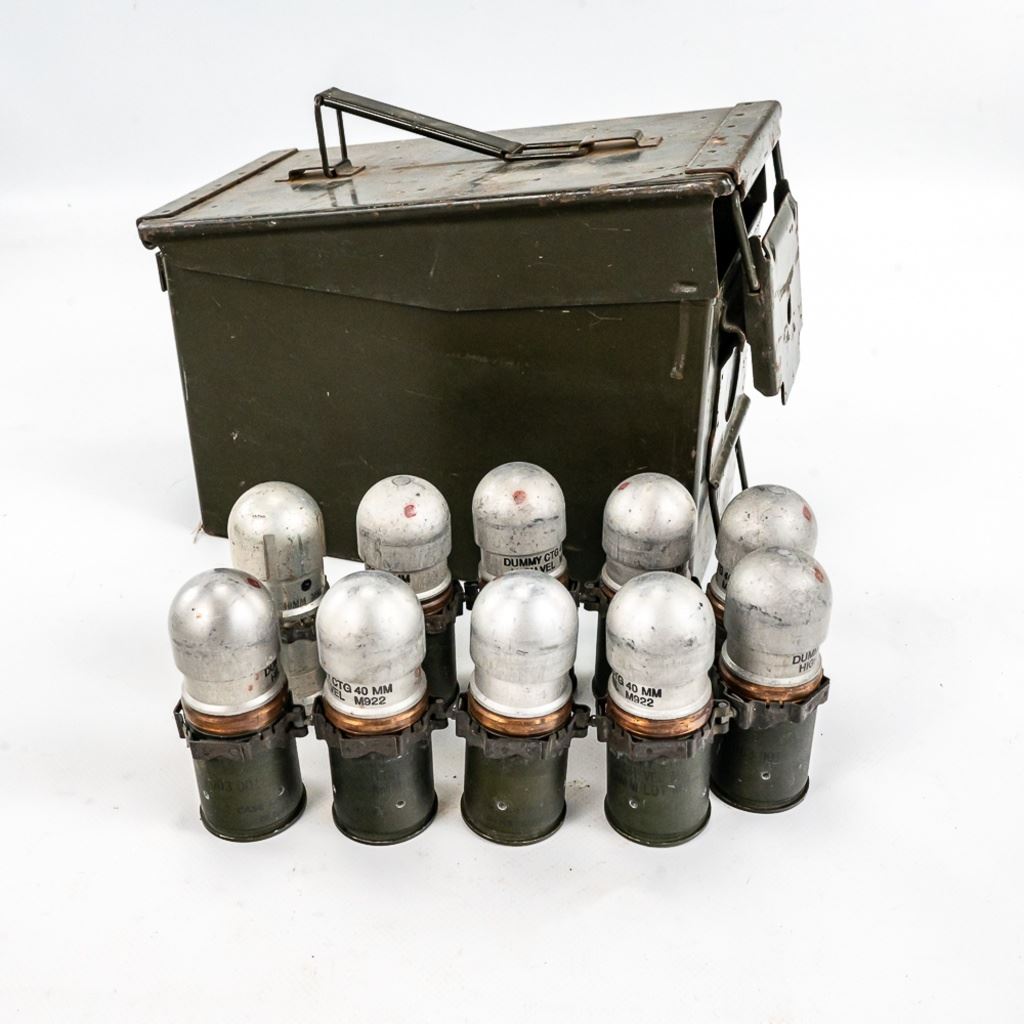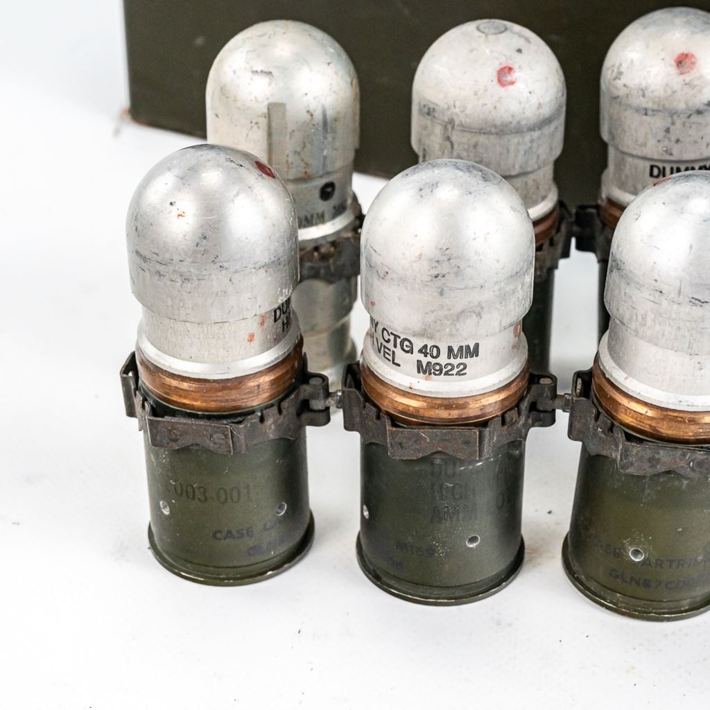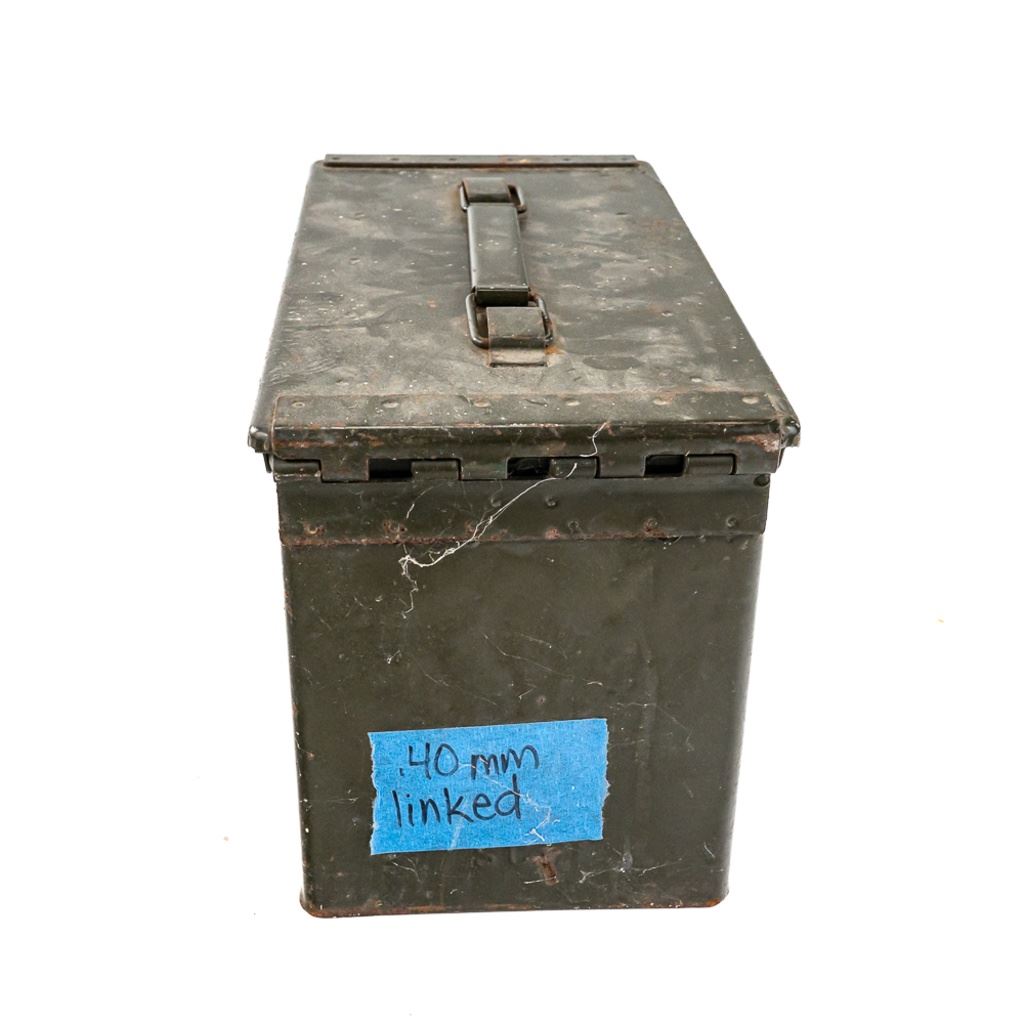 This is from the famous prop house MTS Armorer FX owned by Matthew Stratton. His props were used in many movies and TV shows in the Chicago area and nationally. This link of 10 are all marked and one is solid piece (detached from link) and the other 9 have drilled green shells. They store in custom foam racket in 50 cal ammo box.