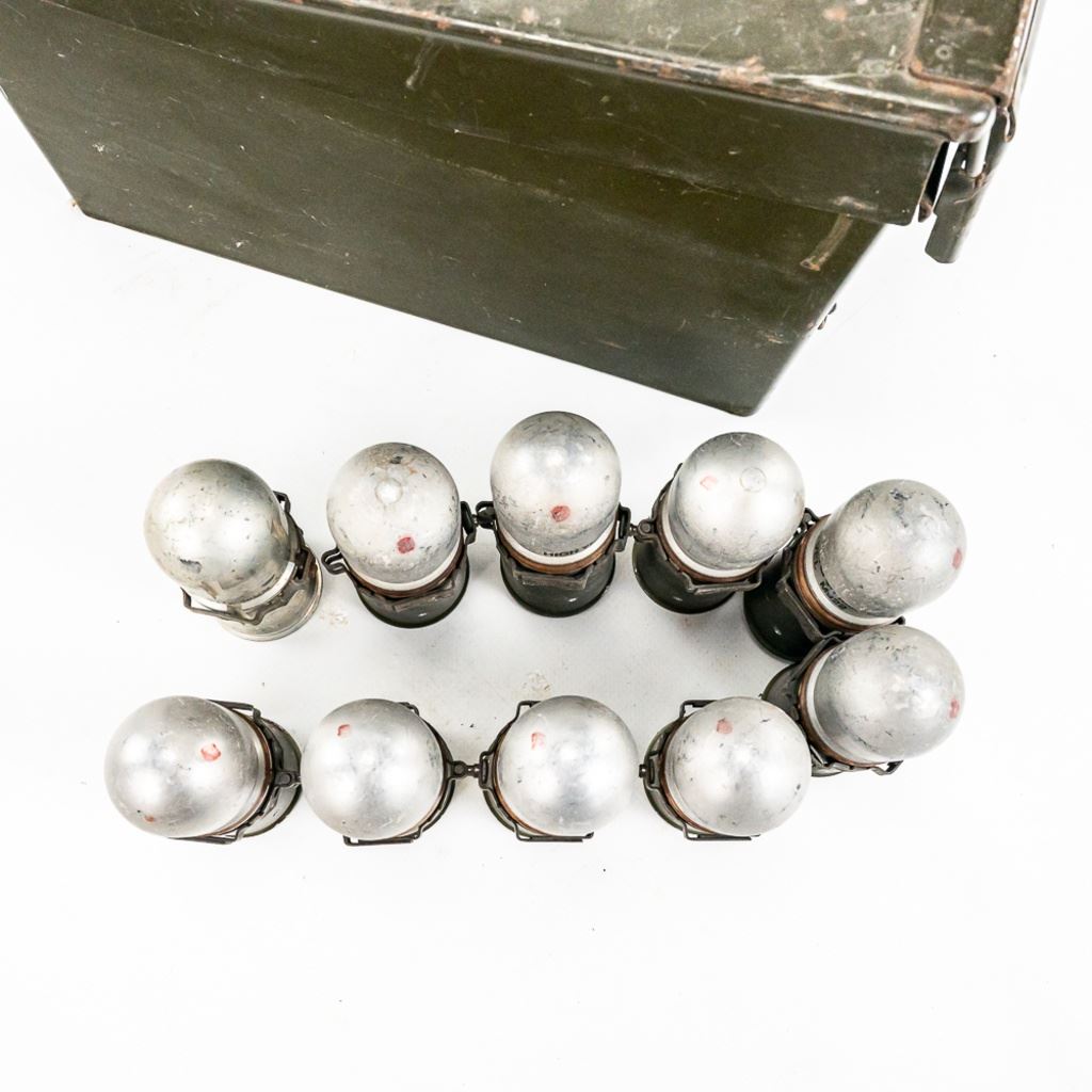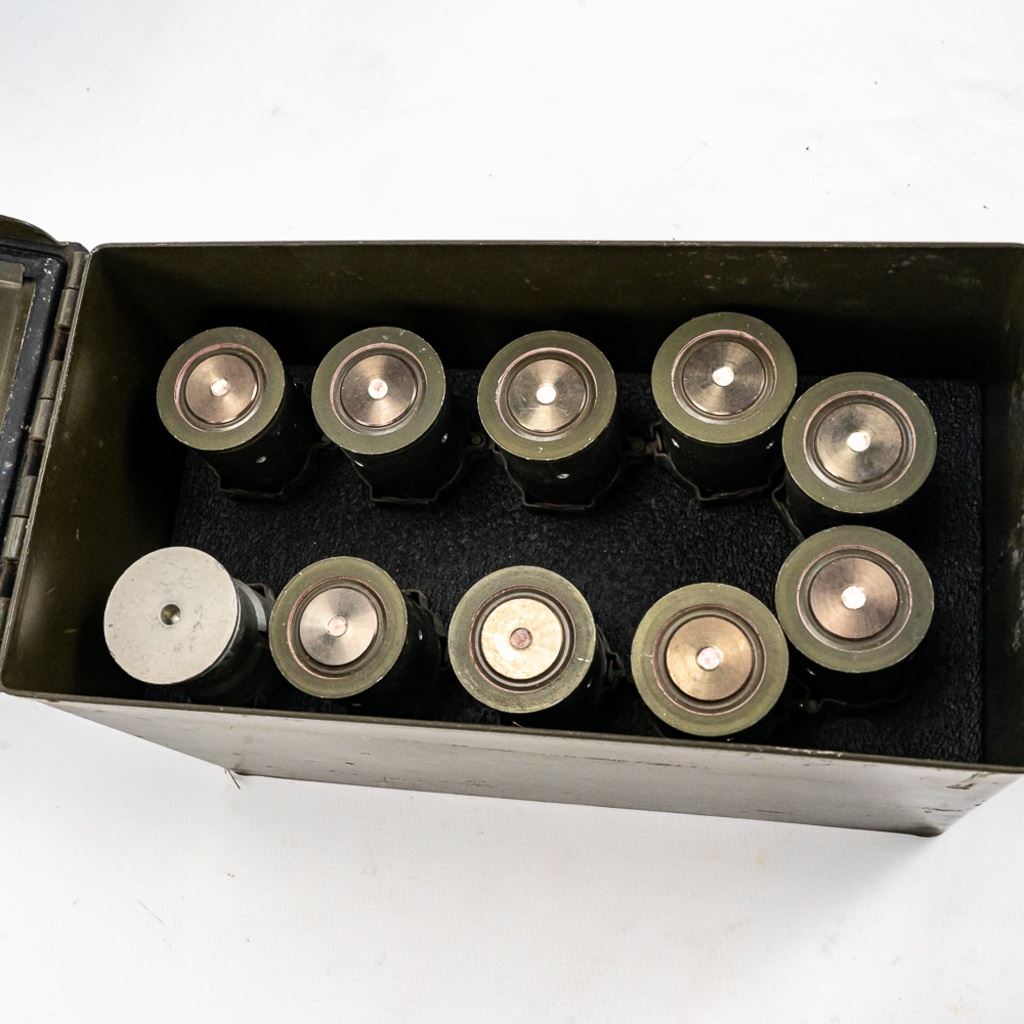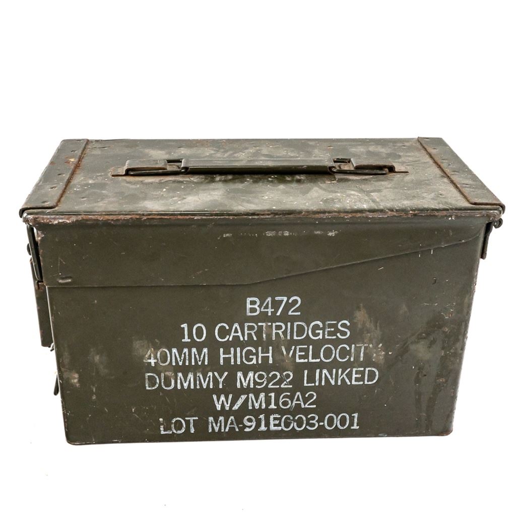 This is from the famous prop house MTS Armorer FX owned by Matthew Stratton. His props were used in many movies and TV shows in the Chicago area and nationally. This link of 10 are all marked and one is solid piece (detached from link) and the other 9 have drilled green shells. They store in custom foam racket in 50 cal ammo box.