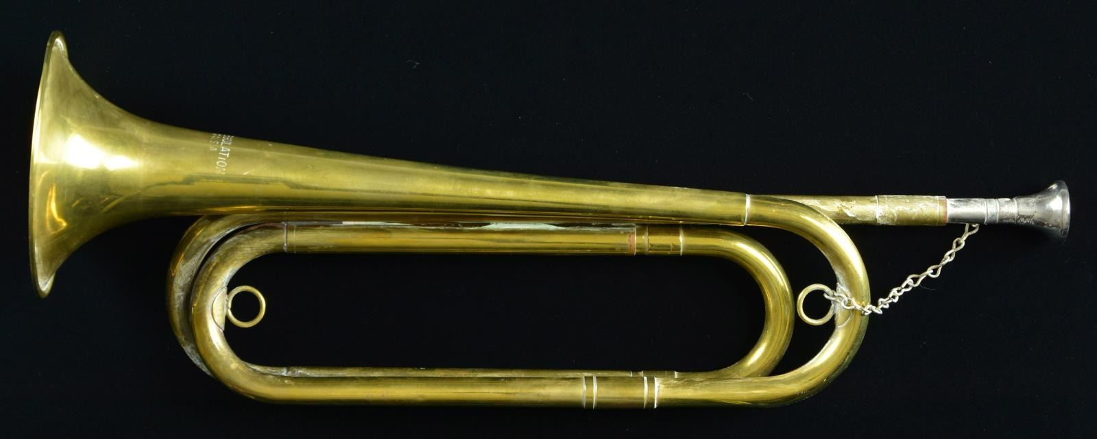Overall: 16 3/4". Mouthpiece is marked "Rexcraft". Marked on bell "US Regulation / MADE IN THE USA". CONDITION: good overall showing patina & verdigris. Mouthpiece appear frozen in place w/ mildew. (02-19408/MD). $50-75.