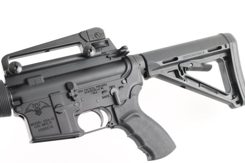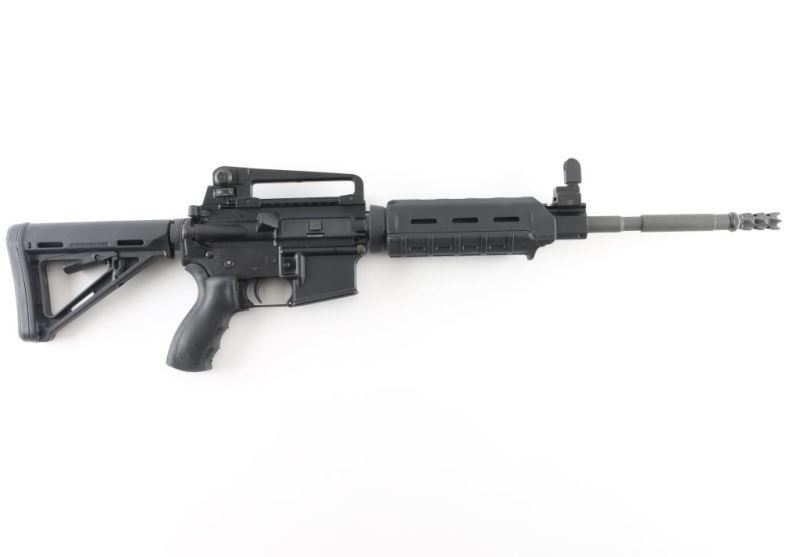 Rifle. Semi-Automatic. 16" phosphate barrel, Phantom flash hider. Flip adjustable post front and Adjustable peep rear sights. Detachable carry handle. Matte black receiver. 3 position Magpul stock. Vented MOE handguards. Forward assist. Casing deflector. Bore appears excellent/bright. Action is crisp/tight. Metal/furniture are excellent with a few very minor scratches. NRA Condition-Near Excellent. Modern Firearm.