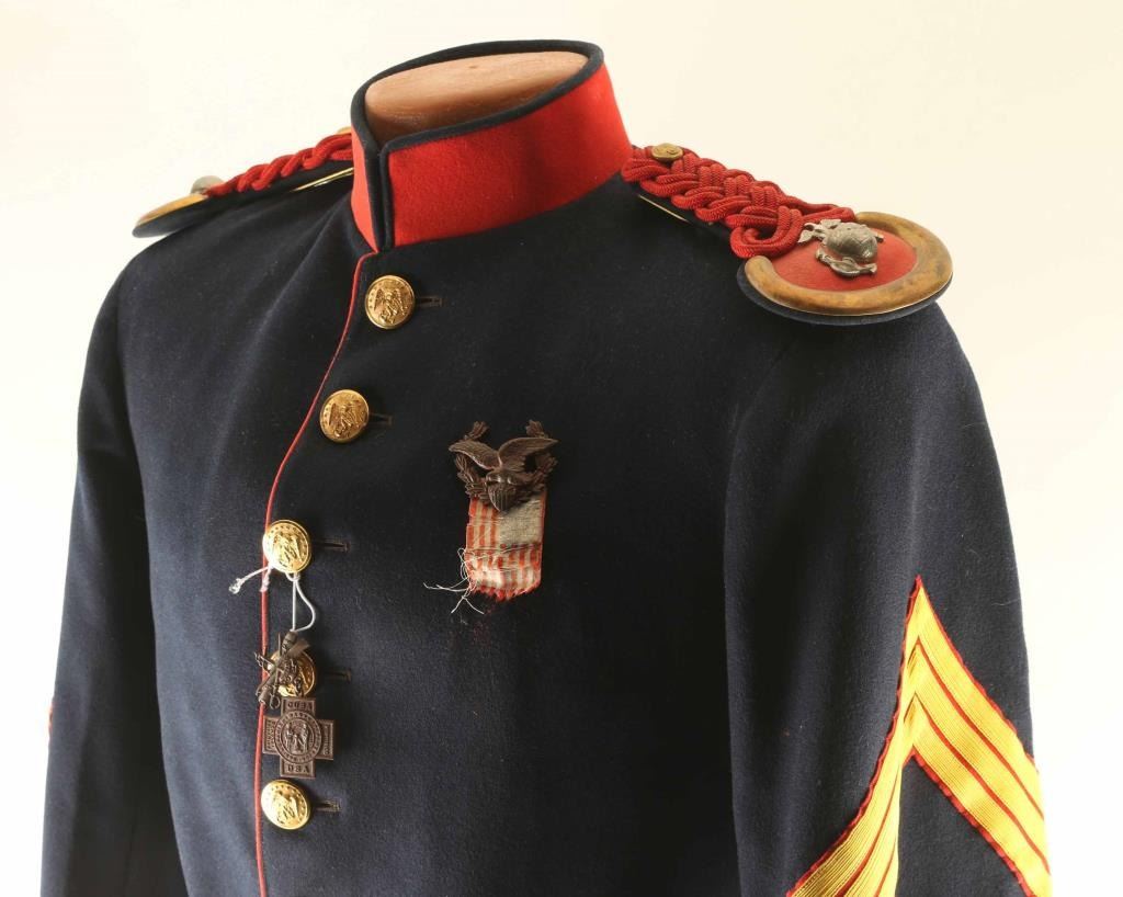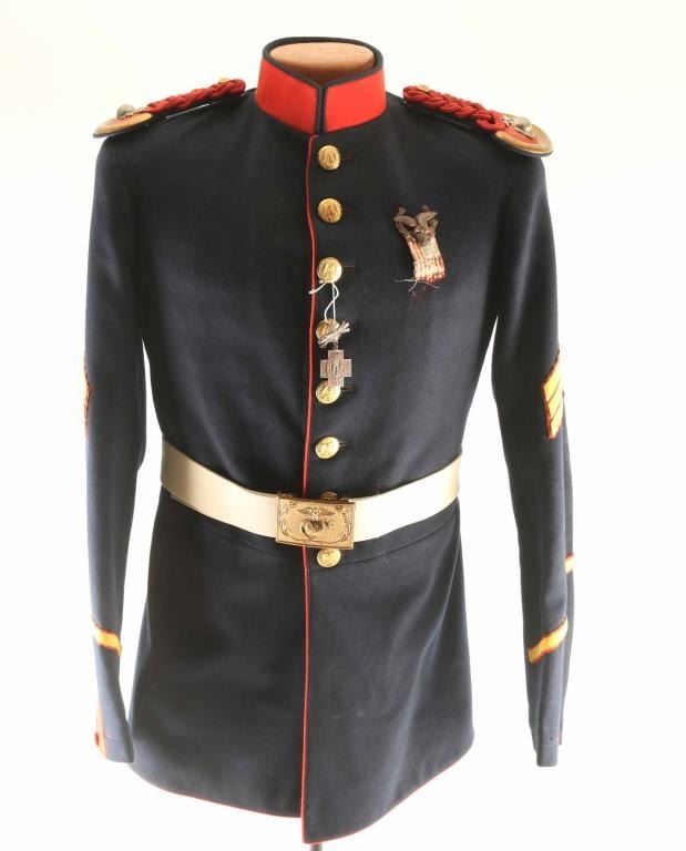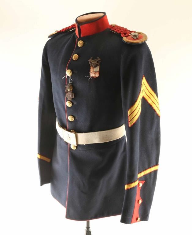 USMC dress blue blouse with shoulder epaulettes, from the early 1900's, post Spanish American War Era. Condition is very good. With remnants of Cuban Campaign medal. Rare blouse and exceptionally hard to find.