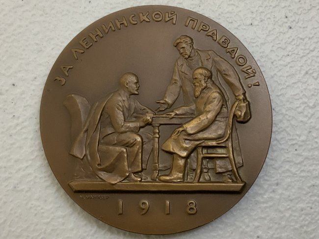 USSR LENIN BRONZE MEDAL BY MANIZER. STRUCK AT LENINGRAD STATE MINT . 2 5/8 DIAM.