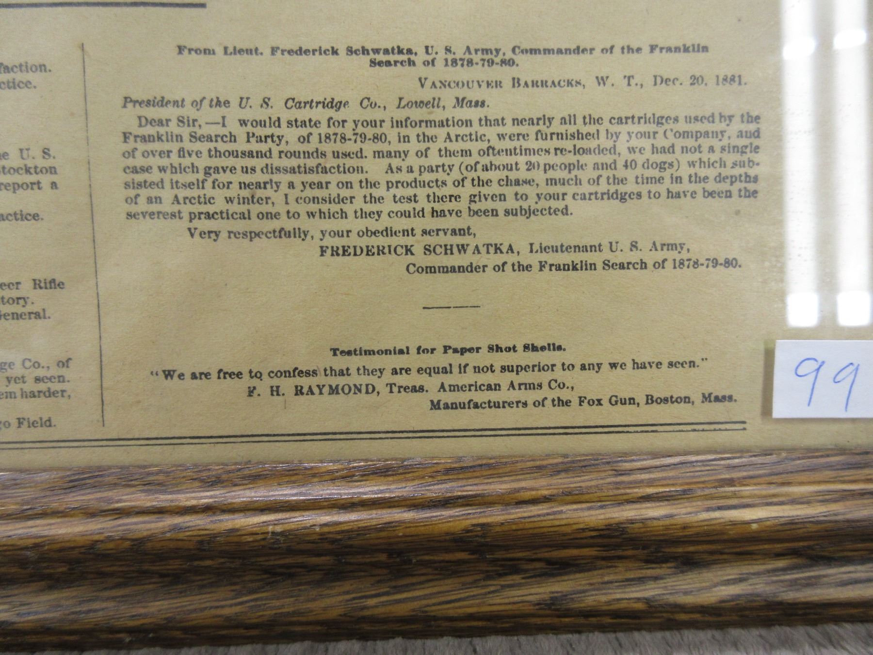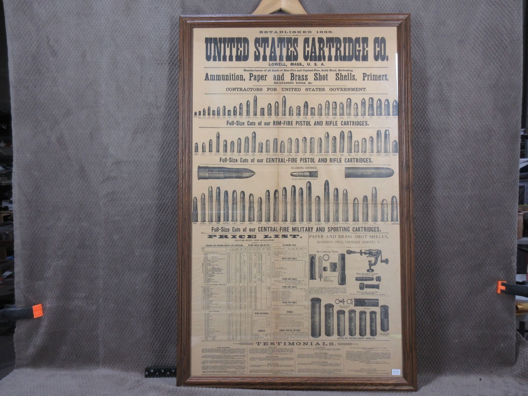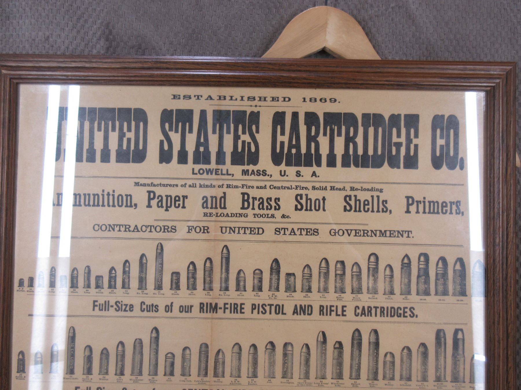 United States Cartridge Poster in Frame - 21 1/2" x 34 1/4" - Poster had folds and creases before framed - Appears to be 1880's era