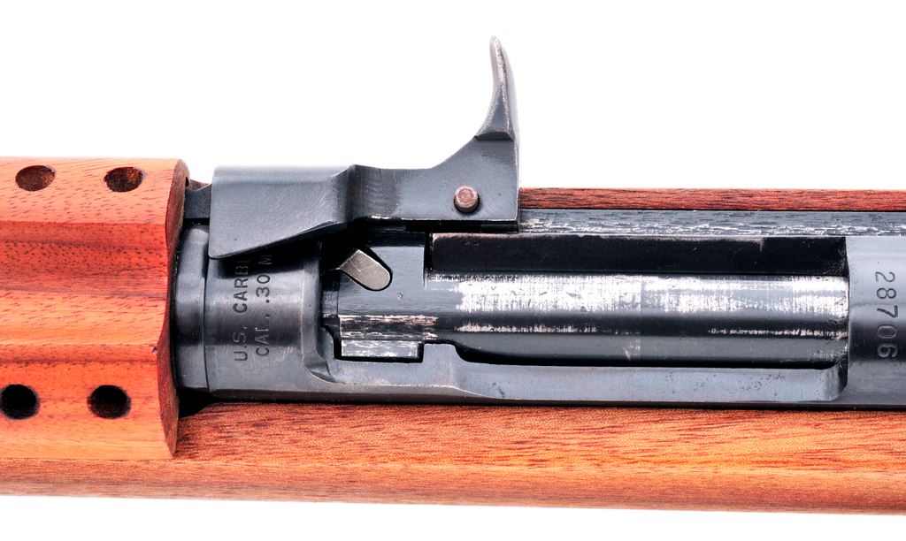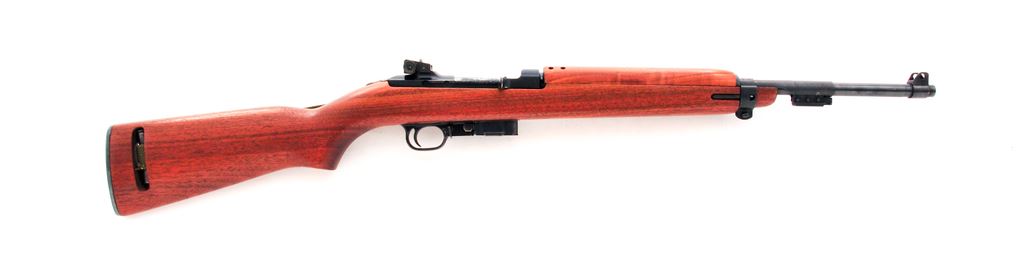 Universal M1 Semi Automatic Carbine, #28706, .30 Carbine cal., 18'' barrel, blued finish, hardwood stock. Blade front sight with protecting ears and aperture on ramp rear sight. Marked on chamber ''U.S.CARBINE CAL. .30 M1'' and on rear of receiver ''UNIVERSAL HIALEAH. FLA.'' Includes one 5-round magazine. Condition overall is about excellent with metal surfaces showing finish wear on the bolt and a few light scratches and a spot of patina on the barrel. Wood is excellent with a few light scratches and handling marks. Action is smooth, bore is very good. Includes a U.S.G.I. oiler and military style sling in good condition. Est.: $300-$500. (Modern)