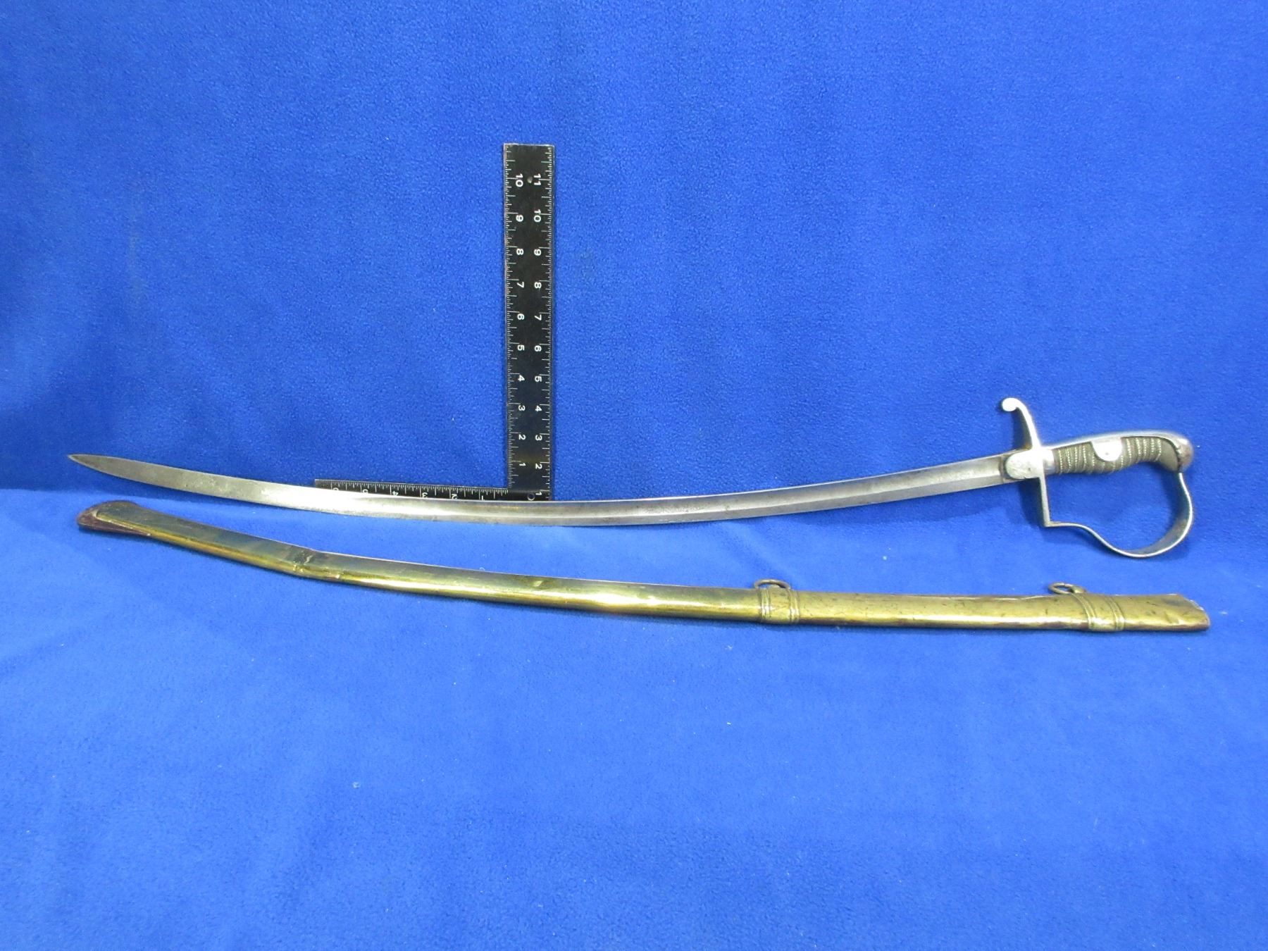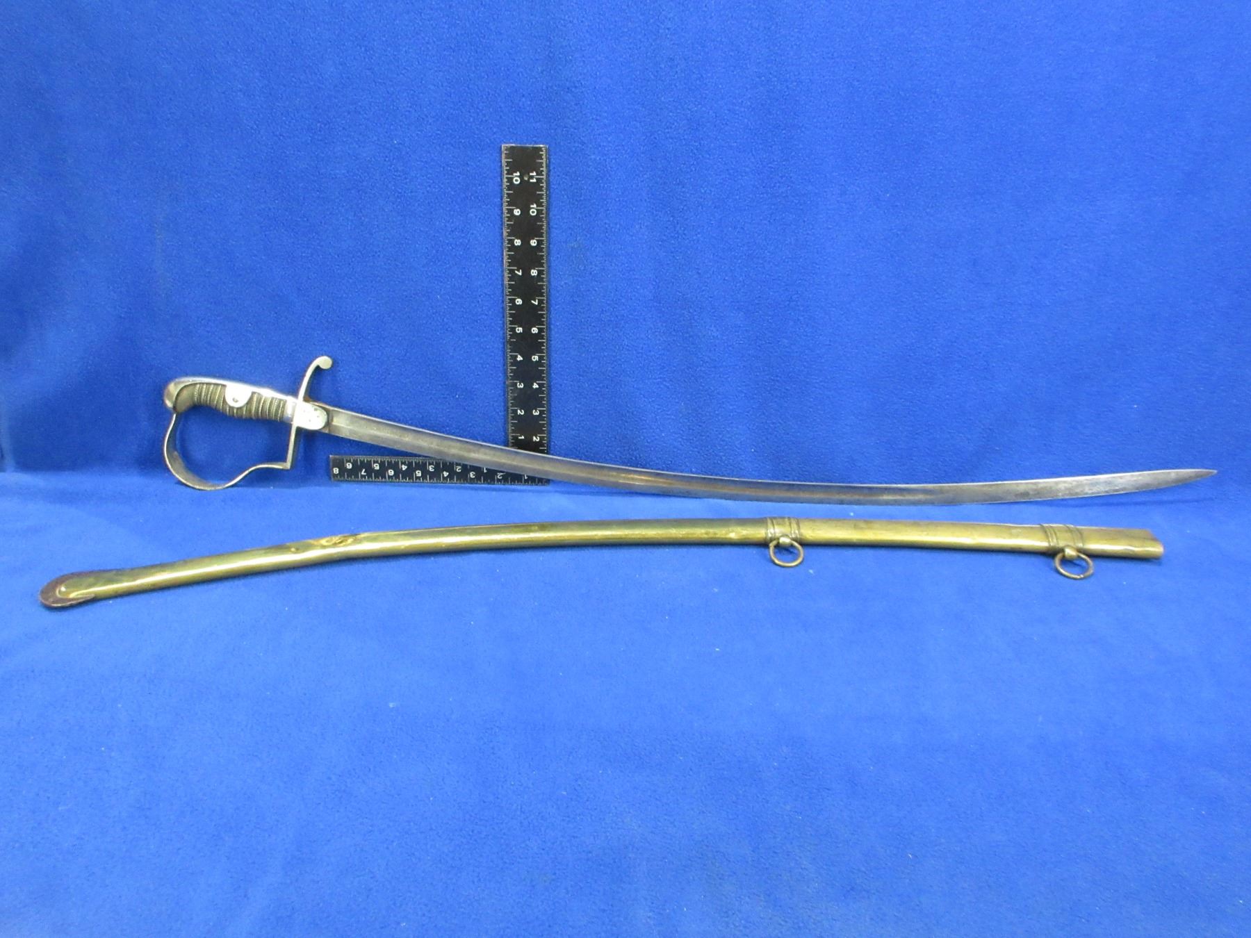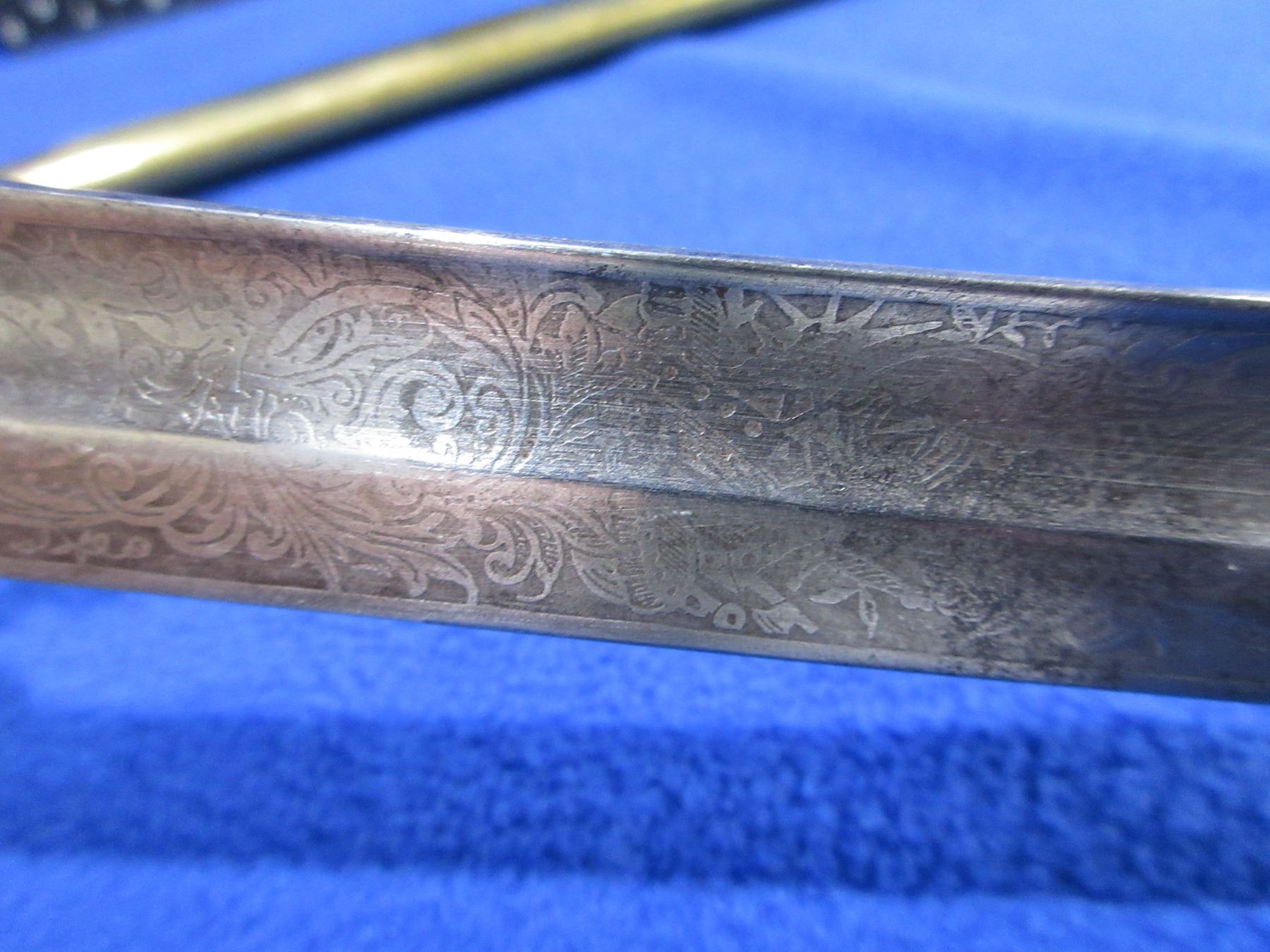 Unknown Sword with Engraving and Brass Scabbard - 31" Blade, Approx. 37" Total Length - Approx. 11" of sword is engraved in front of the guard