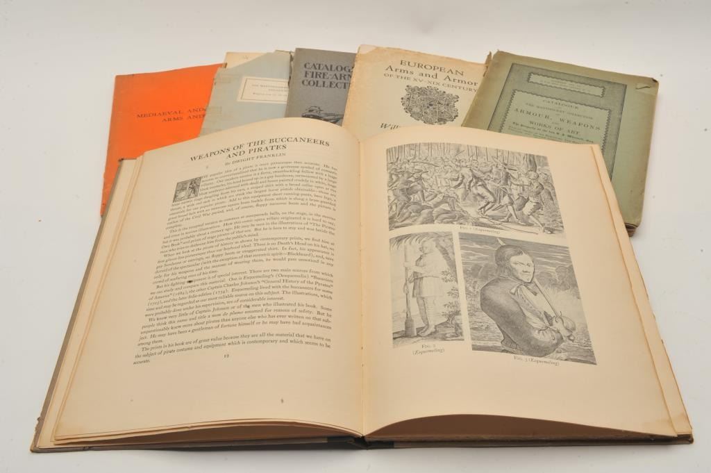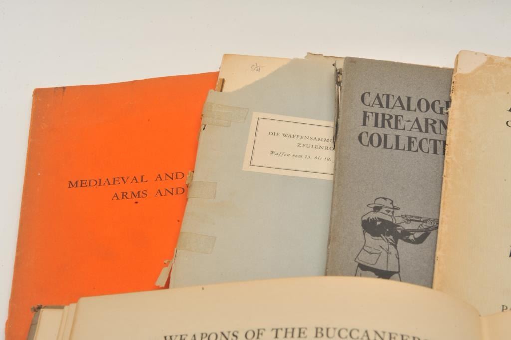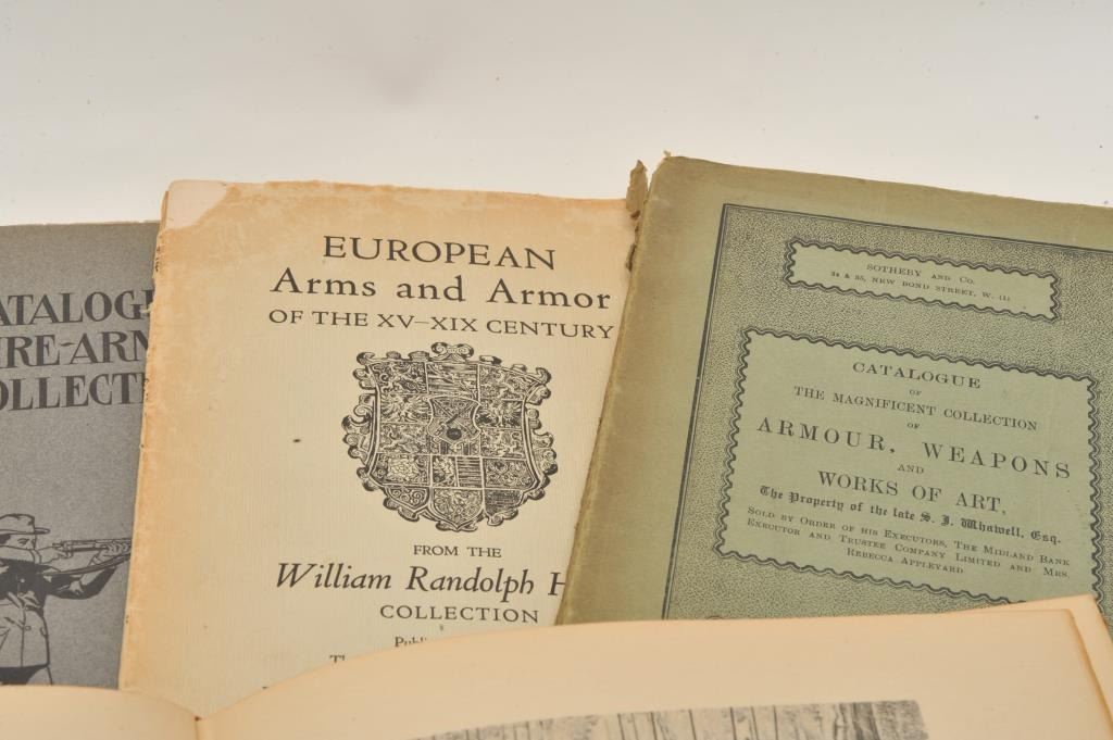VEE-204 EARLY EUROPEAN ARMS REFERENCE LOTEarly European arms and armor reference lot as described: 1. “Miscellany of Arms and Armor” to Bashford Dean, 1937. Pen inscribed to Jacob Merkun with sentiment signed Bashford Dean. Verygood plus condition. 2. Catalog “Die Waffensammlun Blell Zeulen Roda” Etc. 1940. Hans Lange, Berlin. Excellent black and white photos of flintlocks, wheelocks, and armour. Sold atauction. Price list and notation of sales amount by each lot. Very good except cover is loose and torn. 3. “Medieval and Renaissance Arms and Armour” by Grasay, #10 of 100, hand signed.Exhibited L.A. County Museum, 1953. Good condition. 4. European Arms and Armor from William Randuloph Heasrt collection auction catalog by Parke-Benet Galleries, 1952. Good exceptcover is fair to poor. 5. Catalog Armour, Weapons, Works of art Collection of S.J. Whatswell, 1927. Sothby and Co., London. Very good with price notations in bordors.Early European arms and armor reference lot as described: 1. “Miscellany of Arms and Armor” to Bashford Dean, 1937. Pen inscribed to Jacob Merkun with sentiment signed Bashford Dean. Verygood plus condition. 2. Catalog “Die Waffensammlun Blell Zeulen Roda” Etc. 1940. Hans Lange, Berlin. Excellent black and white photos of flintlocks, wheelocks, and armour. Sold atauction. Price list and notation of sales amount by each lot. Very good except cover is loose and torn. 3. “Medieval and Renaissance Arms and Armour” by Grasay, #10 of 100, hand signed.Exhibited L.A. County Museum, 1953. Good condition. 4. European Arms and Armor from William Randuloph Heasrt collection auction catalog by Parke-Benet Galleries, 1952. Good exceptcover is fair to poor. 5. Catalog Armour, Weapons, Works of art Collection of S.J. Whatswell, 1927. Sothby and Co., London. Very good with price notations in bordors.