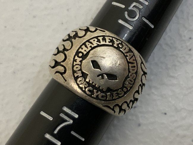 VINTAGE SILVER HARLEY DAVIDSON MOTORCYCLES SCULL RING . 925 SILVER AND STAMPED INSIDE. SIZE 6