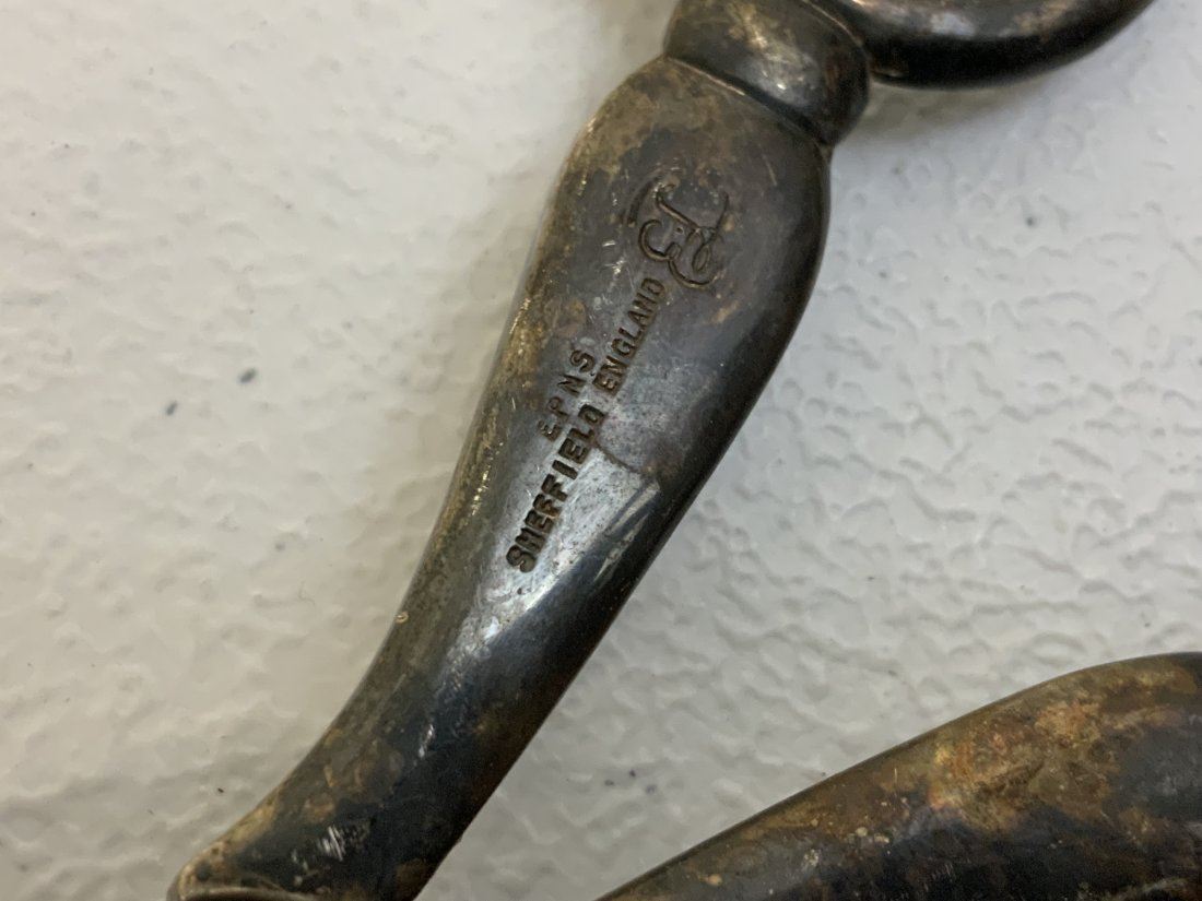 VINTAGE ENGLISH SHEFFIELD ENGLAND SILVER SERVING TONG