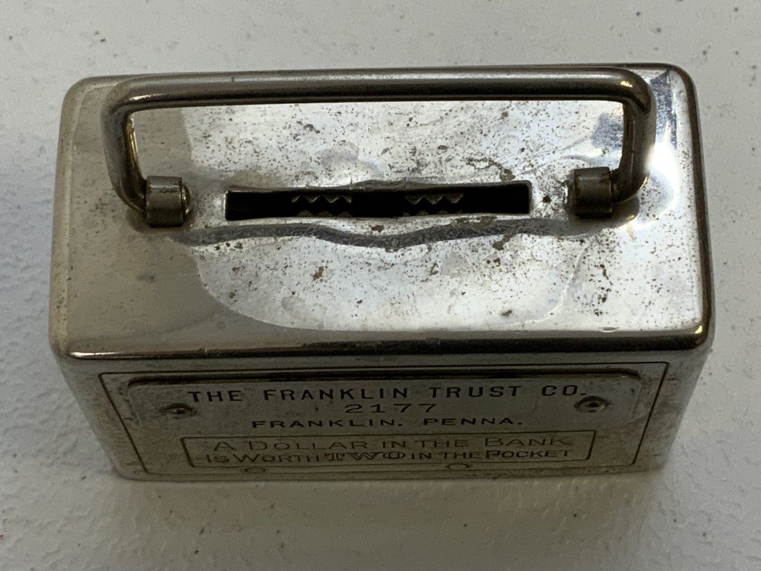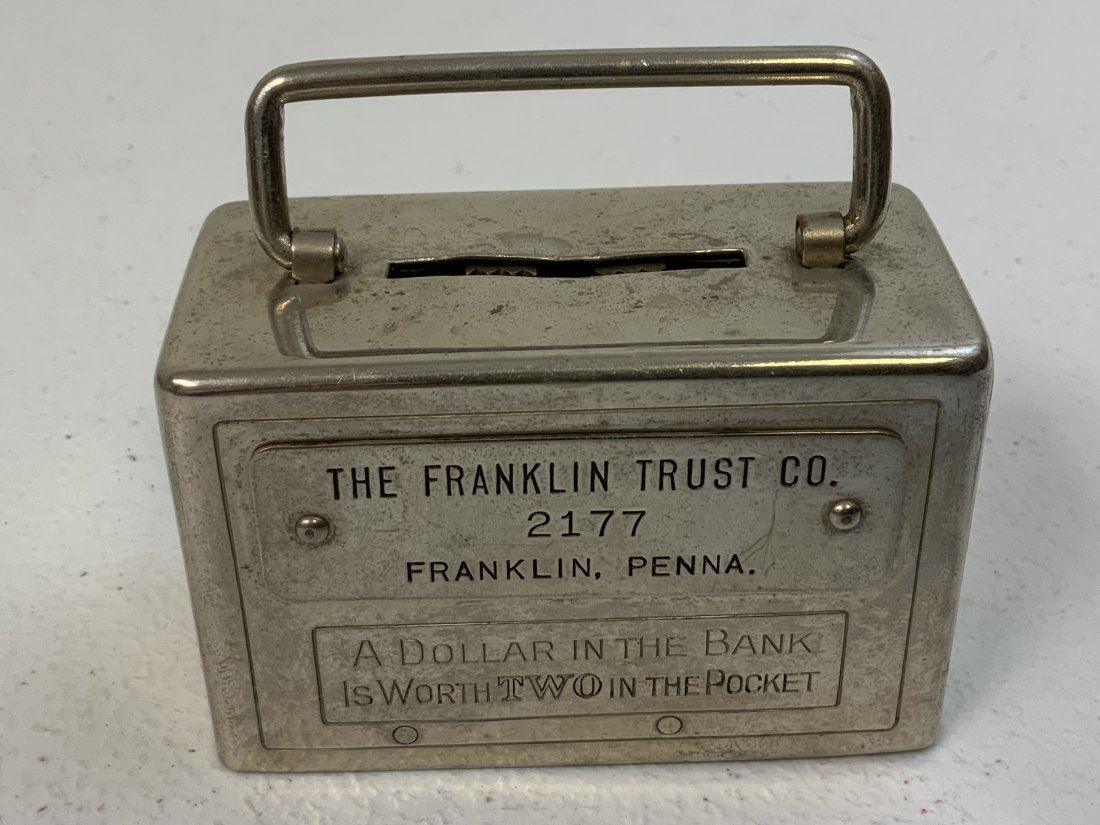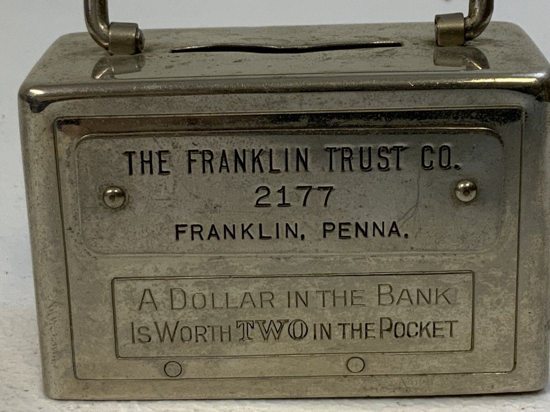 VINTAGE FRANKLIN TRUST CO. COIN BANK . GREAT CONDITION . NO KEY .