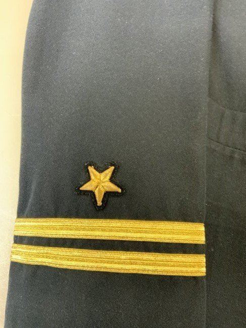VINTAGE KOREAN WAR ERA US NAVY OFFICER DRESS TUNIC NAMED . RARE KOREAN MADE .