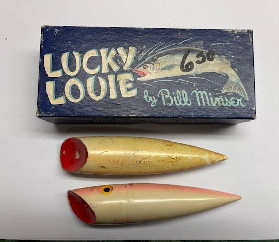 VINTAGE LUCKY LOUIE Wooden fishing plugs in vintage packaging