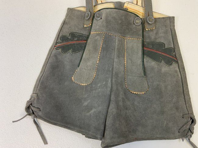 VINTAGE WWII ERA GERMAN YOUNG BOYS LEDERHOSEN EDELWAISS DECORATED. NICE CONDITION . WILL FIT 7-10 YEARS OLD BOY