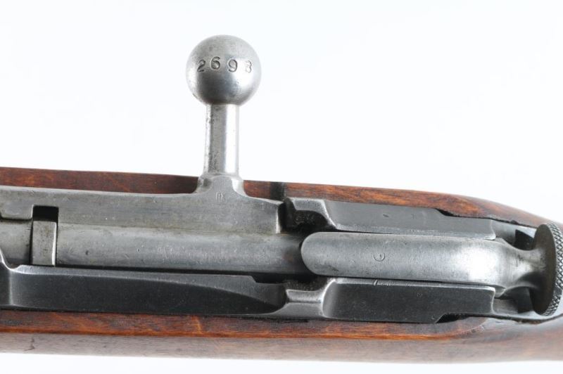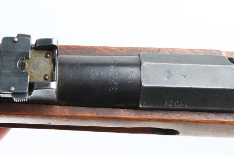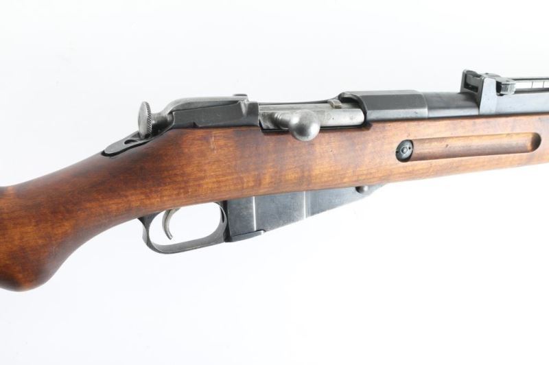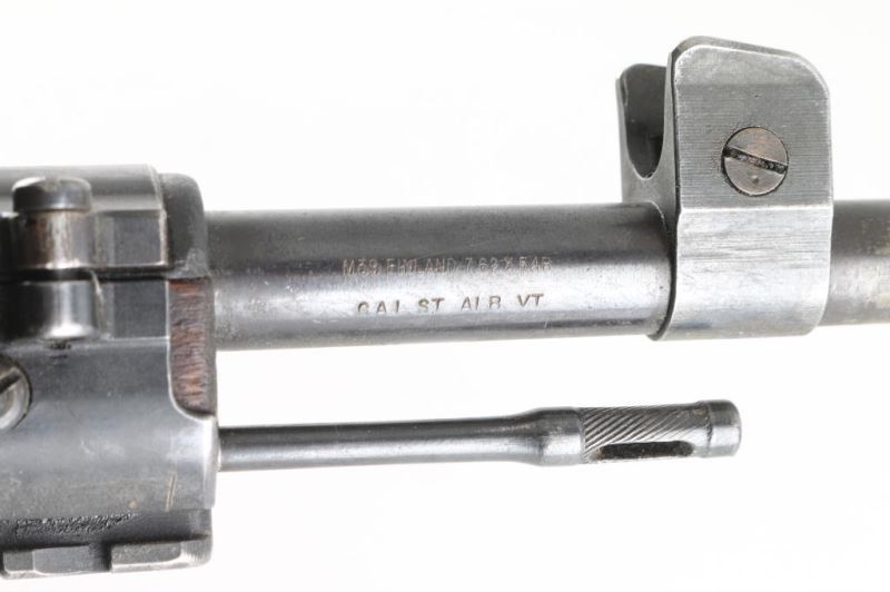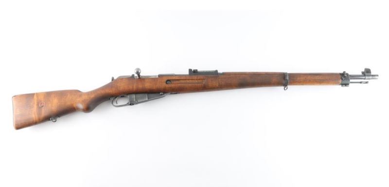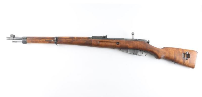 Finnish military bolt action rifle, dated 1941, imported by CAI, Georgia VT. Features blued finish, bolt assembly in the white, wood stock & handguard, curved grip area, 27" barrel, protected blade front sight, tangent type rear sight also flips up to serve as a ladder sight, cleaning rod, bayonet lug, side & bottom mounted sling swivels, manual safety. Bore is bright with strong rifling. Retains 85% blued finish, with thinning or bare metal at muzzle & front sight, scratches and handling marks. Wood is good to very good with minor scrapes and small gouges. 2 cartouches on left stock. Markings include: "SA", "VKT" inside oval logo, outline on hex receiver where Russian Imperial eagle was. Serial number repeated on barrel, receiver, bolt knob. ,and magazine floorplate. "86432" on rear sight base. NRA Condition-Very good. C&R Firearm.