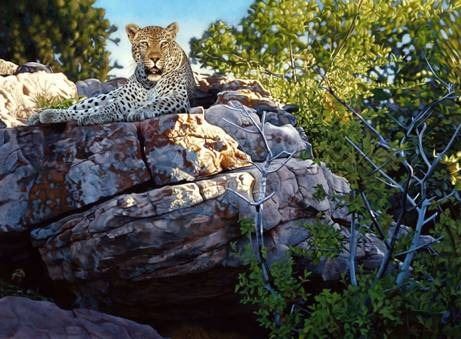 “Vantage Point” is an impressive giclee on canvas by Joshua Spies, Safari Club International 2011 Artist of the Year. The image size: 27” X 36”. It is Number 52 of only 100, signed by Joshua Spies. Joshua Spies paints from his real life experiences. He has a passion for conservation, up-close and real encounters with wildlife, then sharing them through his art. His paintings come from experiences in places such as Tanzania, Cameroon, South Africa, Zimbabwe, Namibia, Mongolia, Argentina, New Zealand, Tajikistan, Turkey, Kyrgyzstan, Spain, British Columbia, Yukon, Alaska, and Mexico. This print is offered unframed so that the successful bidder can obtain customized framing to fit the décor of the room in which it will be hung. The giclee is ready for stretching and framing. Shipping costs for the winning online bidder will be charged to the final invoice.