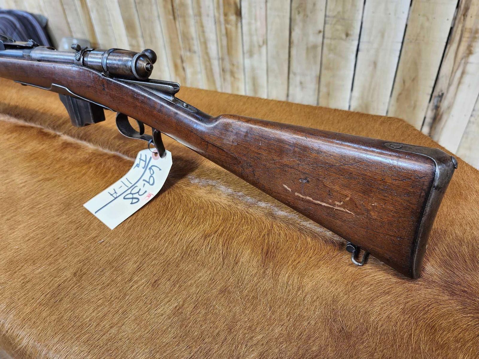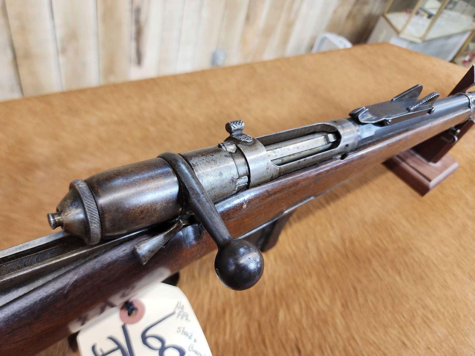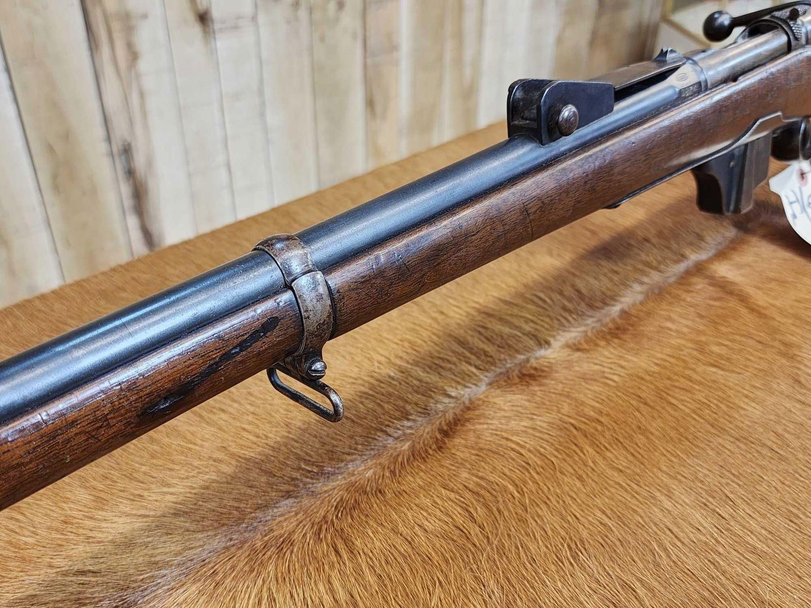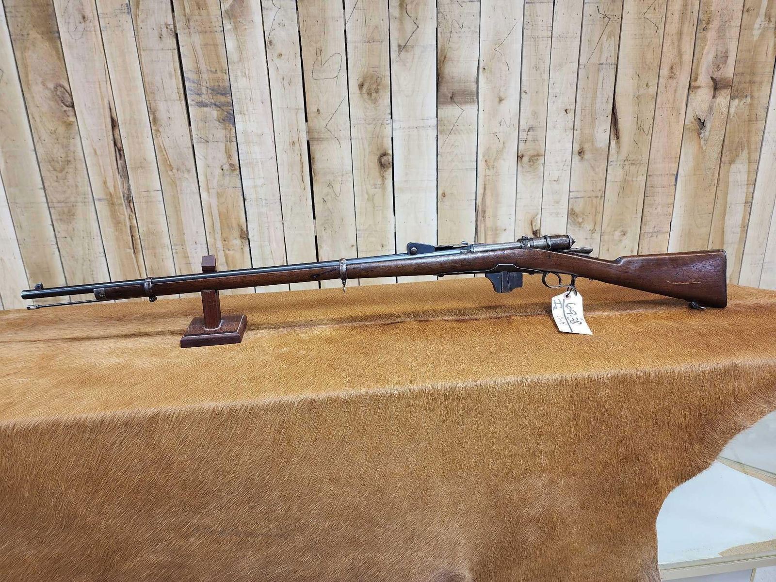 69.38 Possibly Mfg 1874 numbers matching on stock barrel according to the cartouche on the stock this gun was converted from a single Shot to a 4 shot repeater in 1888 interesting piece this is an antique gun no ffl required shiny bore good rifling action seems crisp this gun was converted about 137 years ago SN BD1532