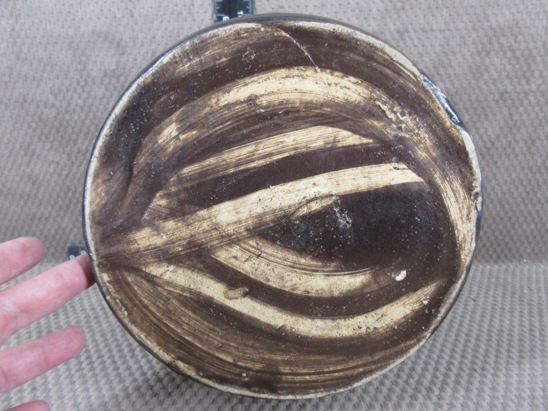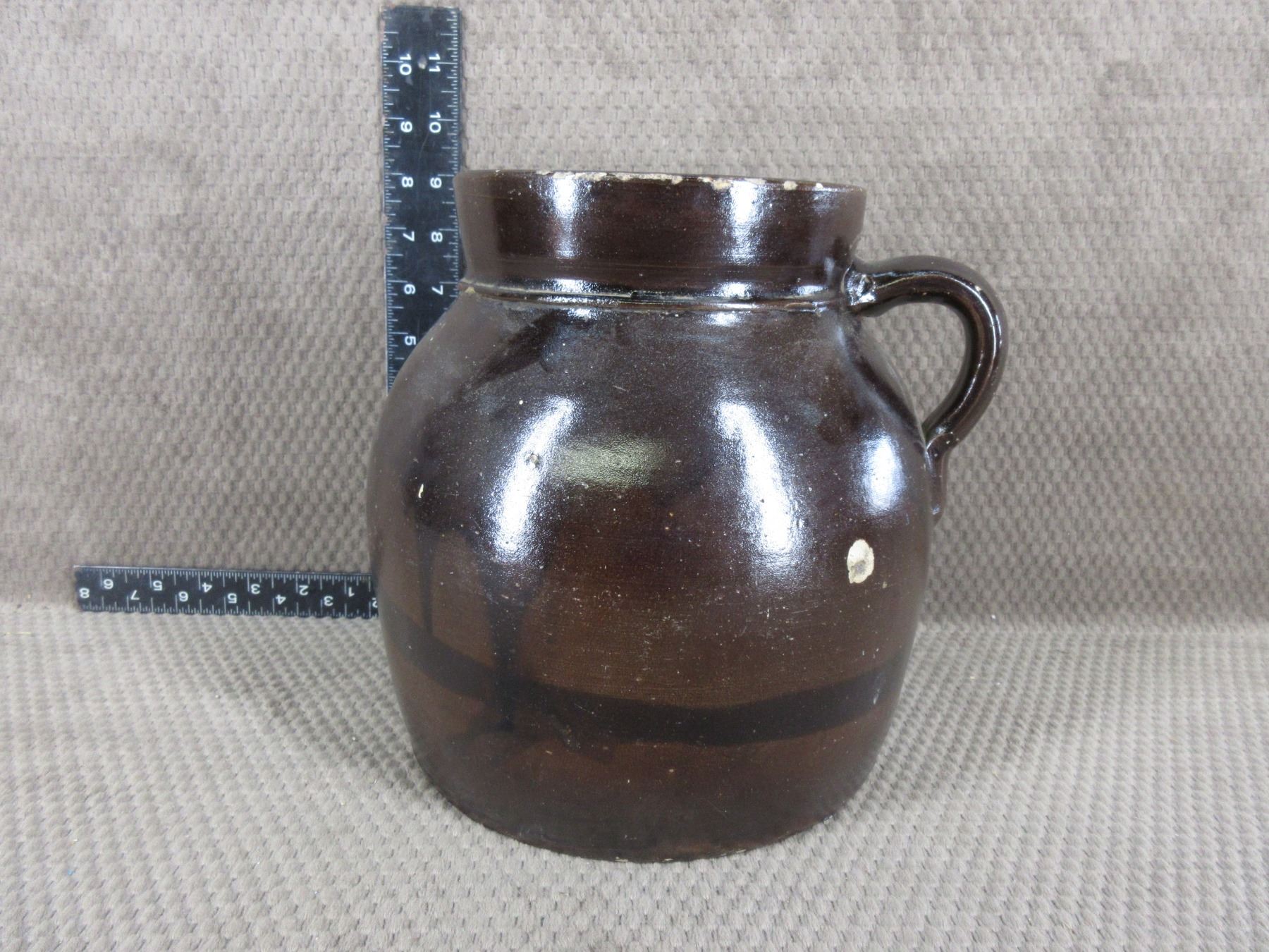 Vintage 1 Gallon Brown Stoneware Bean Pot - Pot has various chip and lid has 1 large chip
