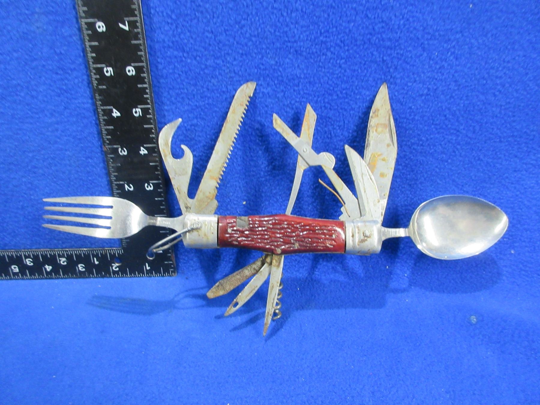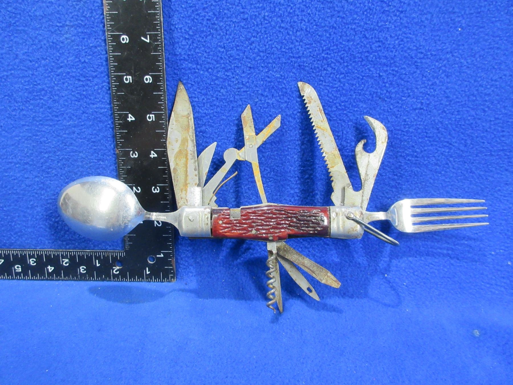 Vintage 11 Utensil Camping Utility Survival Knife - Has some rust