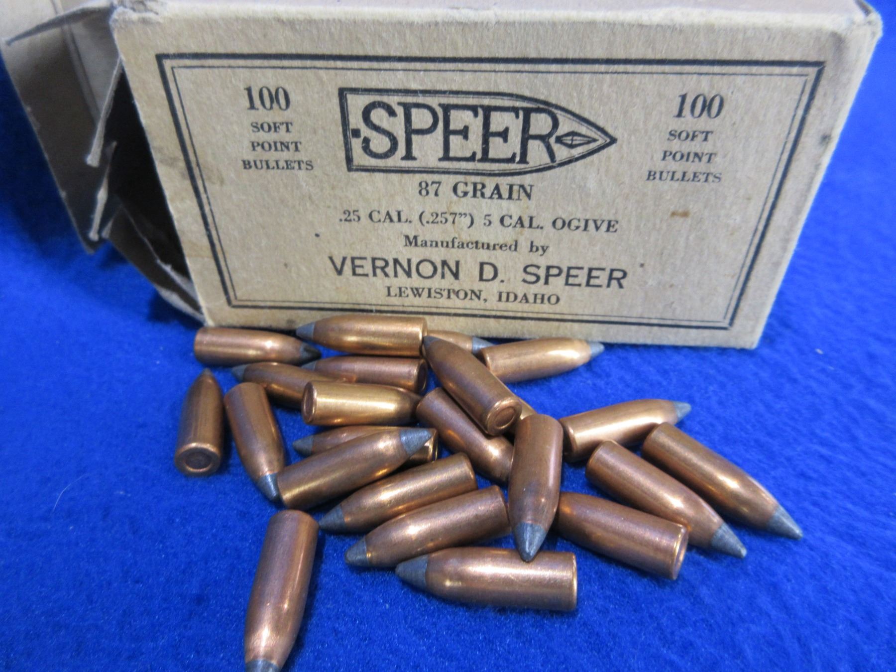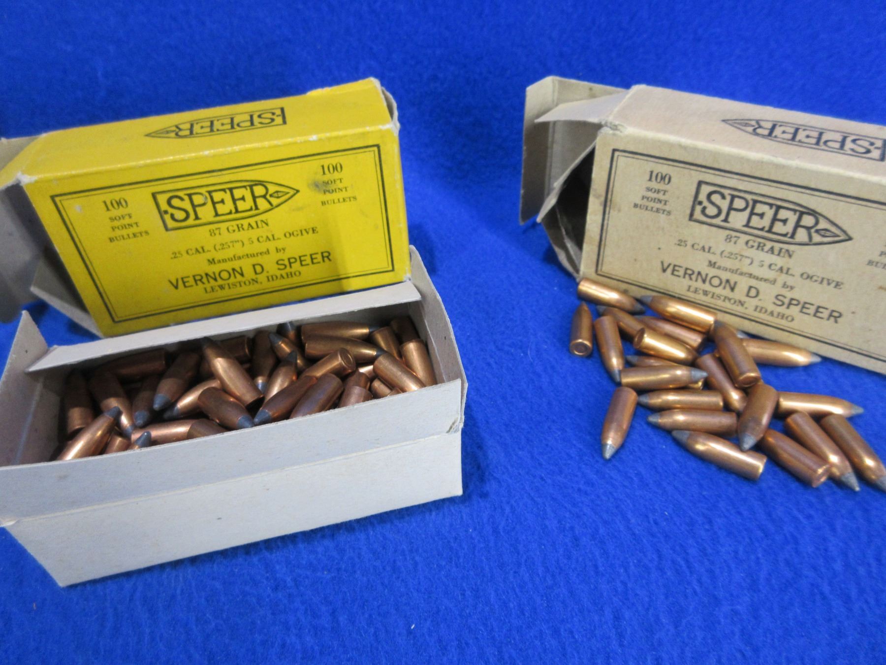 Vintage 25 Cal. .257" 87gr SP Speer Bullets - Box of 100, Box of 23