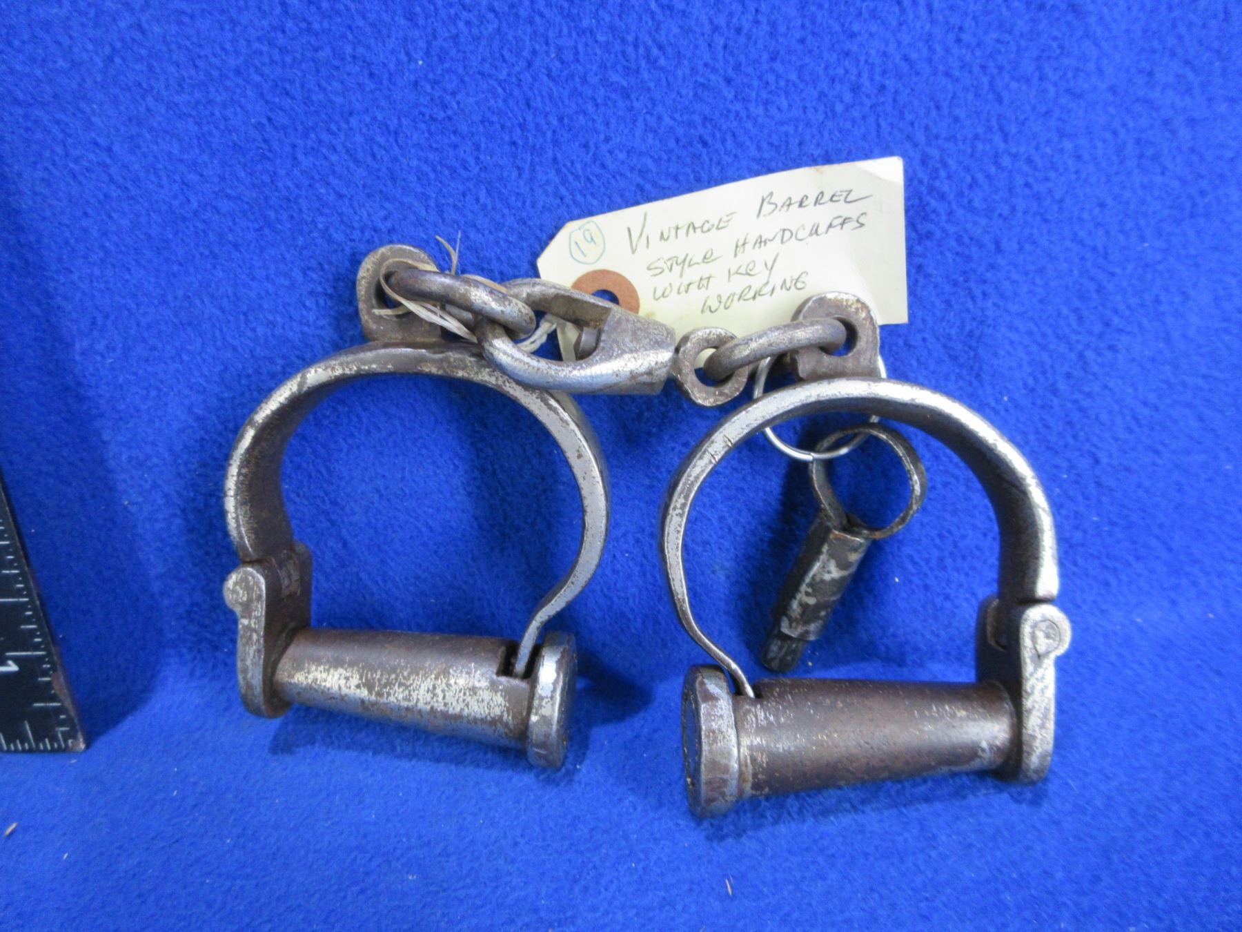 Vintage Barrel Style Handcuffs with 1 Key - Marked "T9 2 1/2"